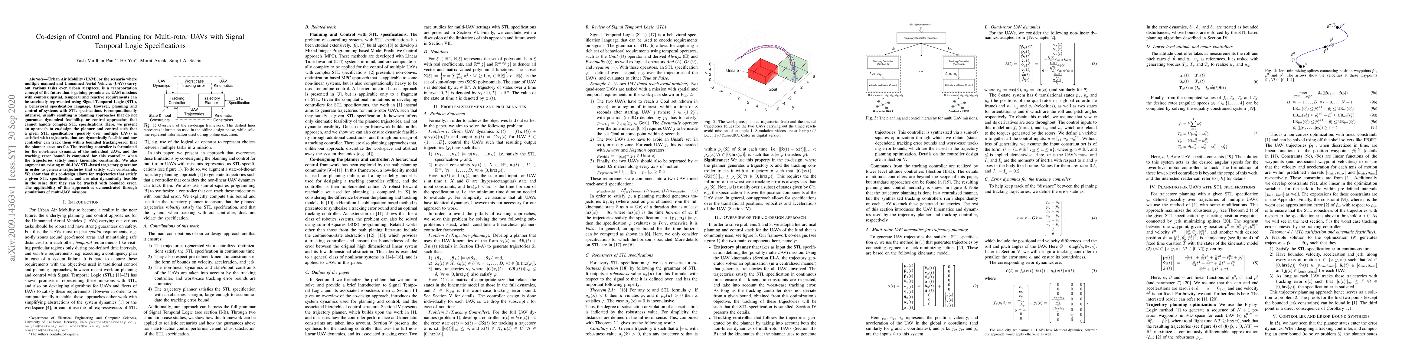 This paper presents a co-design method for planning and control of multi-rotor UAVs to satisfy Signal Temporal Logic specifications, ensuring dynamically feasible trajectories with bounded tracking error. The approach integrates a modified STL-based trajectory generator and a tracking controller for the UAVs' non-linear dynamics.