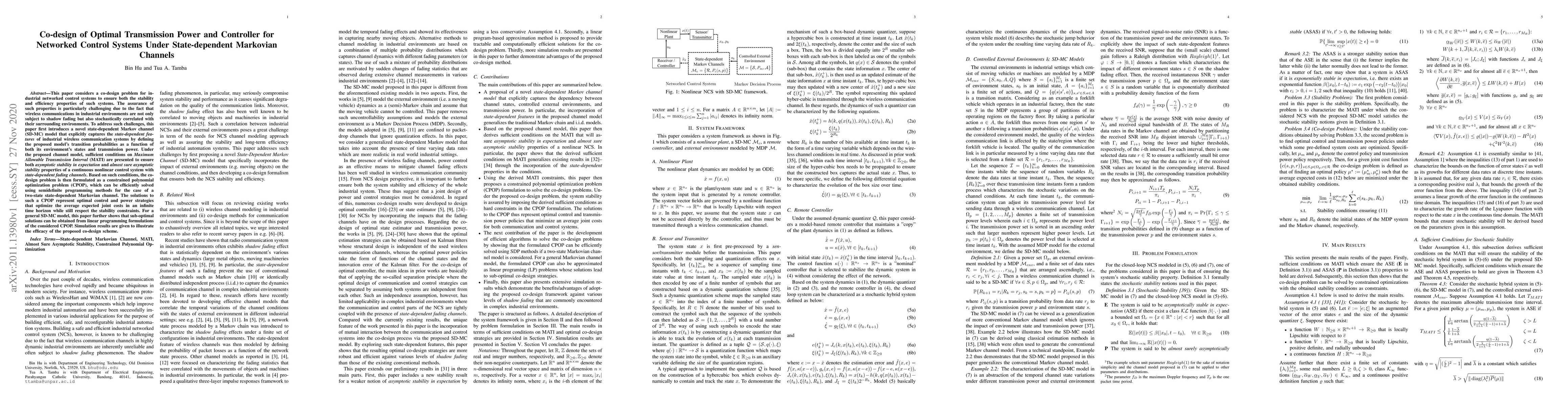 This paper proposes a novel state-dependent Markov channel model to address stability and efficiency in networked control systems under industrial wireless communication challenges. It formulates a constrained polynomial optimization problem to co-design optimal transmission power and control strategies, ensuring stability and minimizing costs, with efficient solutions via semidefinite and linear programming.