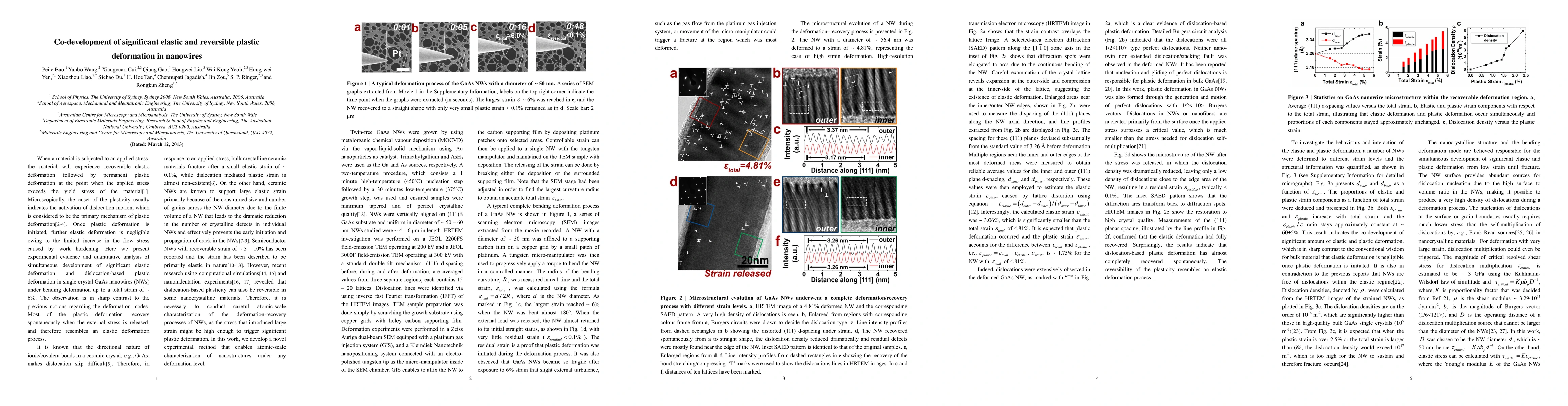 This paper presents experimental evidence showing that single crystal GaAs nanowires can simultaneously exhibit significant elastic and reversible plastic deformation under bending, challenging traditional views on dislocation-based plastic deformation. Most of the plastic deformation recovers upon stress release, indicating a unique reversible deformation mechanism.