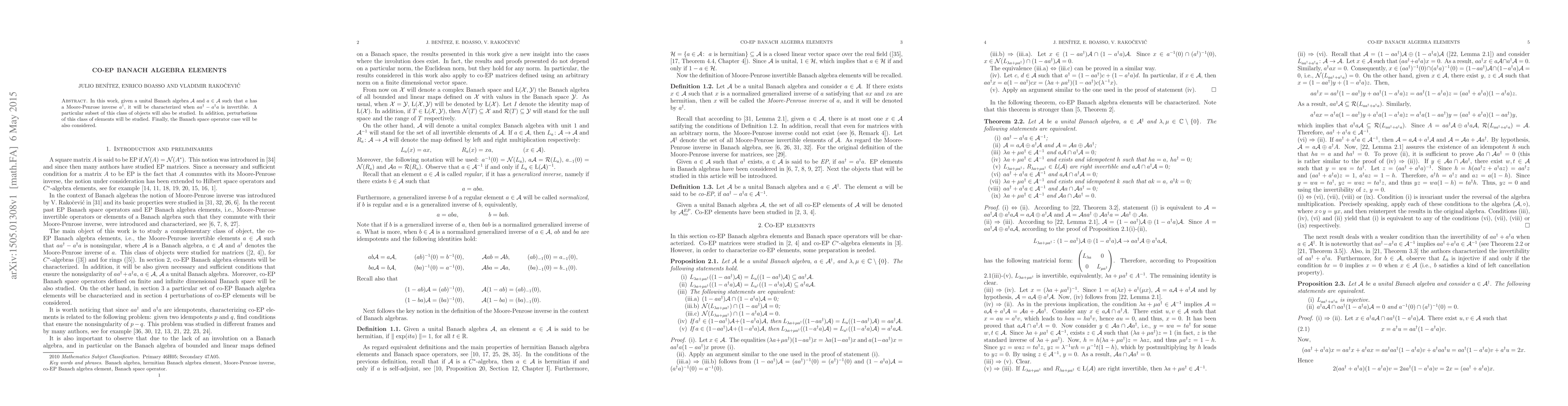 In this work, given a unital Banach algebra $\A$ and $a\in \A$ such that $a$ has a Moore-Penrose inverse $a^\dagger$, it will be characterized when $aa^\dagger-a^\dagger a$ is invertible. A particular subset of this class of objects will also be studied. In addition, perturbations of this class of elements will be studied. Finally, the Banach space operator case will be also considered.