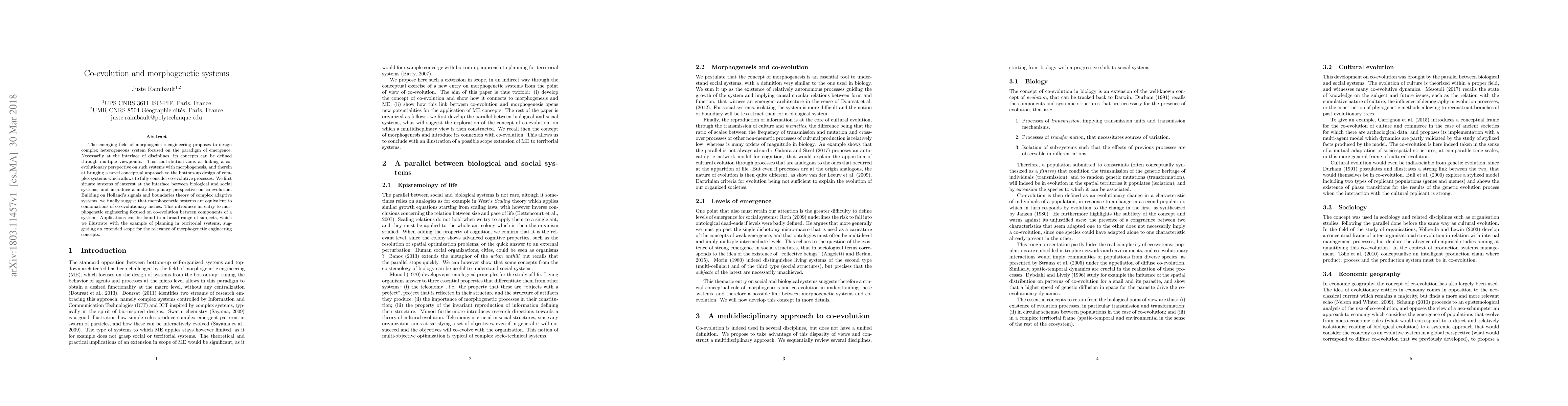 This paper explores morphogenetic engineering through a co-evolutionary lens, proposing a novel conceptual approach to designing complex systems by integrating co-evolutive processes. It situates these systems at the intersection of biological and social domains, suggesting morphogenetic systems are akin to combinations of co-evolutionary niches.
