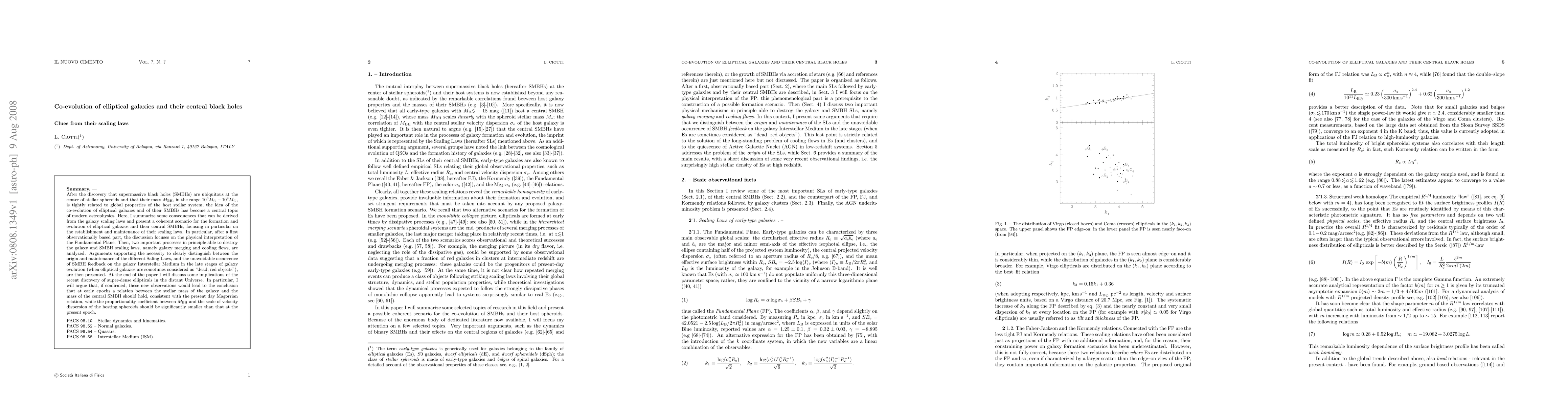 This paper explores the co-evolution of elliptical galaxies and their central supermassive black holes (SMBHs), emphasizing the galaxy Scaling Laws (SLs) and their implications. It argues for the necessity of SMBH feedback in the late stages of galaxy evolution and discusses the potential impact of recent discoveries of super-dense ellipticals in the distant Universe on the early relationship between stellar mass and SMBH mass.