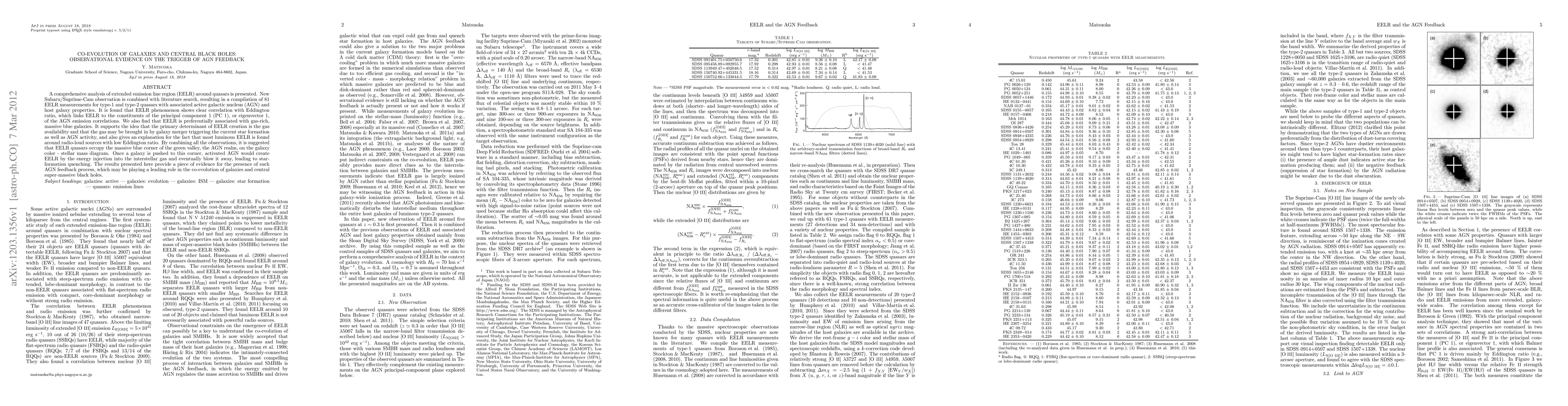 A comprehensive analysis of extended emission line region (EELR) around quasars is presented. New Subaru/Suprime-Cam observation is combined with literature search, resulting in a compilation of 81 EELR measurements for type-1 and type-2 quasars with associated active galactic nucleus (AGN) and host galaxy properties. It is found that EELR phenomenon shows clear correlation with Eddington ratio, which links EELR to the constituents of the principal component 1 (PC 1), or eigenvector 1, of the AGN emission correlations. We also find that EELR is preferentially associated with gas-rich, massive blue galaxies. It supports the idea that the primary determinant of EELR creation is the gas availability and that the gas may be brought in by galaxy merger triggering the current star formation as well as AGN activity, and also gives an explanation for the fact that most luminous EELR is found around radio-loud sources with low Eddington ratio. By combining all the observations, it is suggested that EELR quasars occupy the massive blue corner of the green valley, the AGN realm, on the galaxy color - stellar mass diagram. Once a galaxy is pushed to this corner, activated AGN would create EELR by the energy injection into the interstellar gas and eventually blow it away, leading to star-formation quenching. The results presented here provide a piece of evidence for the presence of such AGN feedback process, which may be playing a leading role in the co-evolution of galaxies and central super-massive black holes.