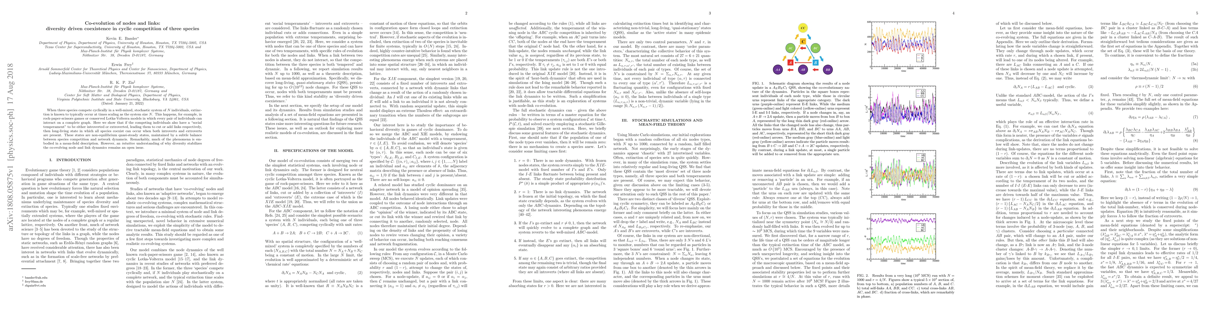 When three species compete cyclically in a well-mixed, stochastic system of $N$ individuals, extinction is known to typically occur at times scaling as the system size $N$. This happens, for example, in rock-paper-scissors games or conserved Lotka-Volterra models in which every pair of individuals can interact on a complete graph. Here we show that if the competing individuals also have a "social temperament" to be either introverted or extroverted, leading them to cut or add links respectively, then long-living state in which all species coexist can occur when both introverts and extroverts are present. These states are non-equilibrium quasi-steady states, maintained by a subtle balance between species competition and network dynamcis. Remarkably, much of the phenomena is embodied in a mean-field description. However, an intuitive understanding of why diversity stabilizes the co-evolving node and link dynamics remains an open issue.