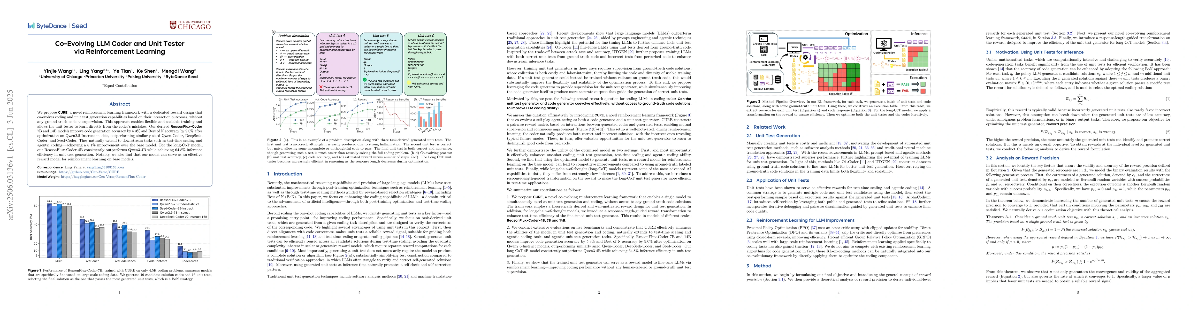 Researchers developed CURE, a framework that co-evolves coding and unit testing capabilities using reinforcement learning, achieving 5.3% improved code generation accuracy and 9.0% better test accuracy in various models.