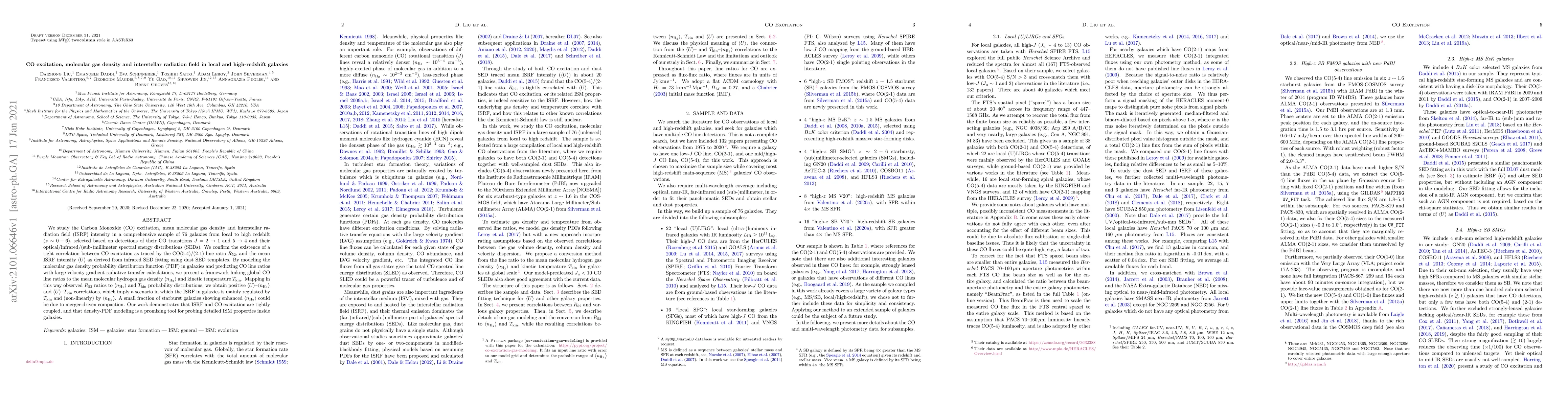 This study investigates CO excitation, molecular gas density, and interstellar radiation field in 76 galaxies from local to high redshift. It finds a strong correlation between CO excitation ratios and the interstellar radiation field intensity, suggesting that the ISRF is regulated by the kinetic temperature and molecular gas density, with density playing a non-linear role.