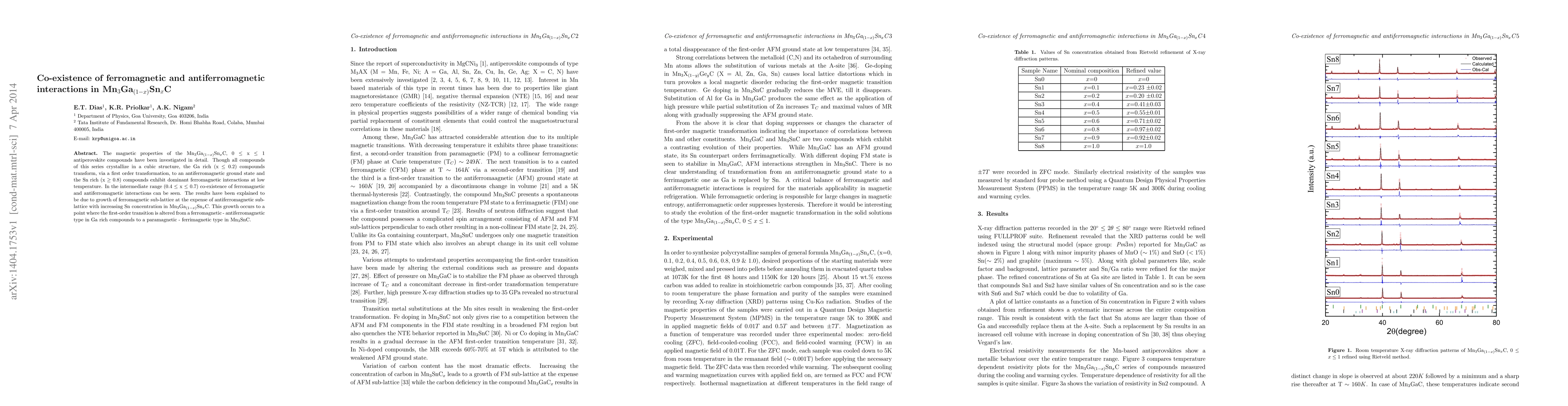 This paper investigates the magnetic properties of Mn$_3$Ga$_{(1-x)}$Sn$_x$C compounds, finding co-existence of ferromagnetic and antiferromagnetic interactions in the intermediate Sn concentration range. The study reveals a transition from antiferromagnetic ground states in Ga-rich compounds to ferromagnetic states in Sn-rich compounds.