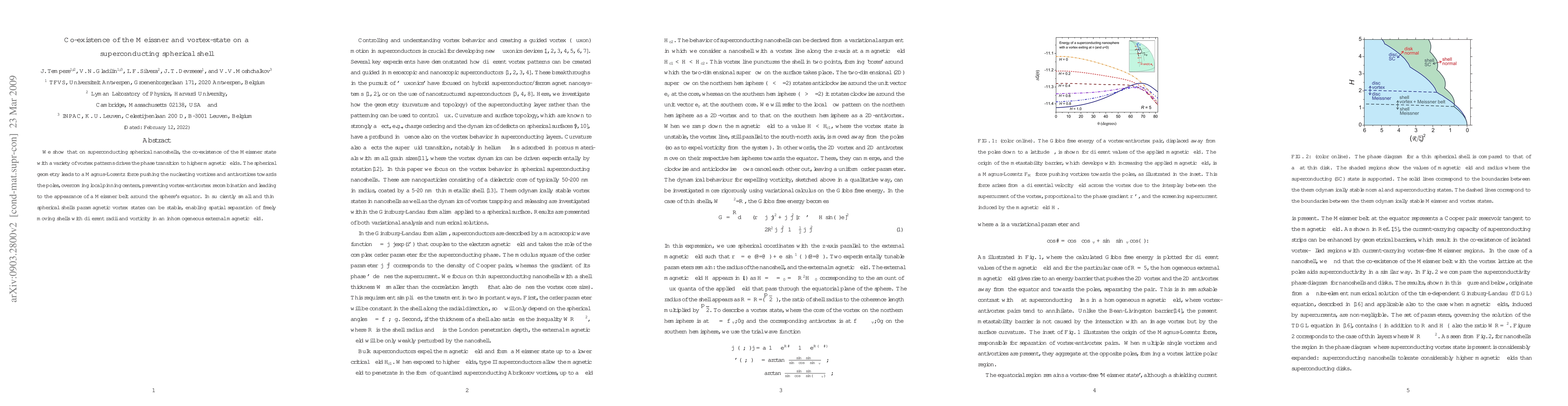 The research demonstrates that superconducting spherical nanoshells can simultaneously exhibit the Meissner state and various vortex patterns, facilitating a phase transition to higher magnetic fields. The spherical geometry causes vortices to move towards the poles, creating a Meissner belt around the equator, and enabling stable, paramagnetic vortex states in small shells, allowing for spatial separation of shells with different radii and vorticity in non-uniform magnetic fields.