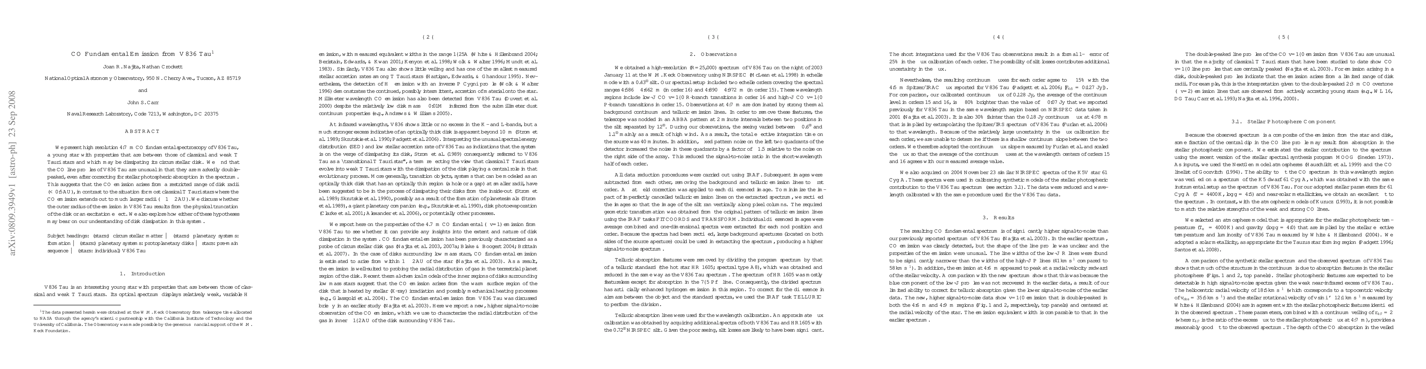 New research on V836 Tau reveals its CO fundamental emission is double-peaked, suggesting a restricted disk radius of < 0.5 AU, contrasting with classical T Tauri stars that extend up to 2 AU.