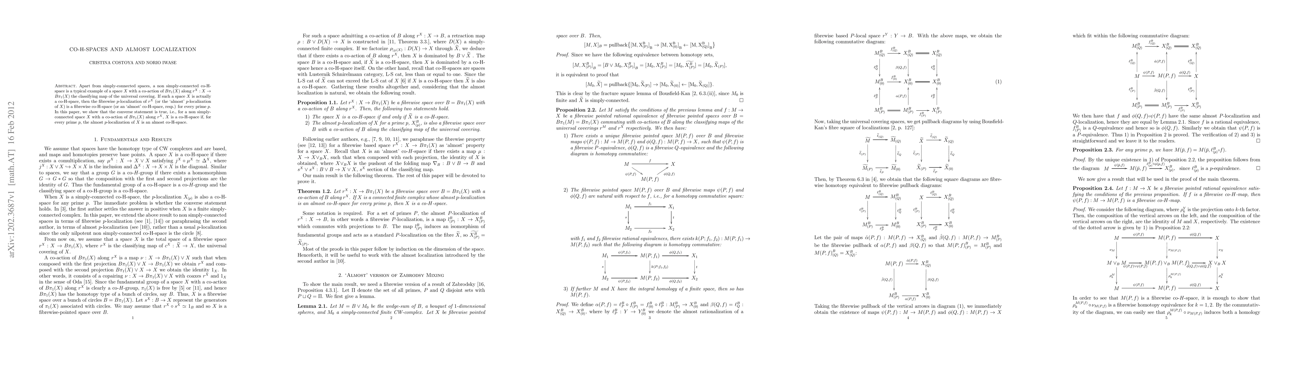 This paper investigates the relationship between co-H-spaces and almost localization in non simply-connected spaces, showing that if a space X with a co-action of $B\pi_1(X)$ has an almost p-localization that is an almost co-H-space for every prime p, then X is itself a co-H-space.