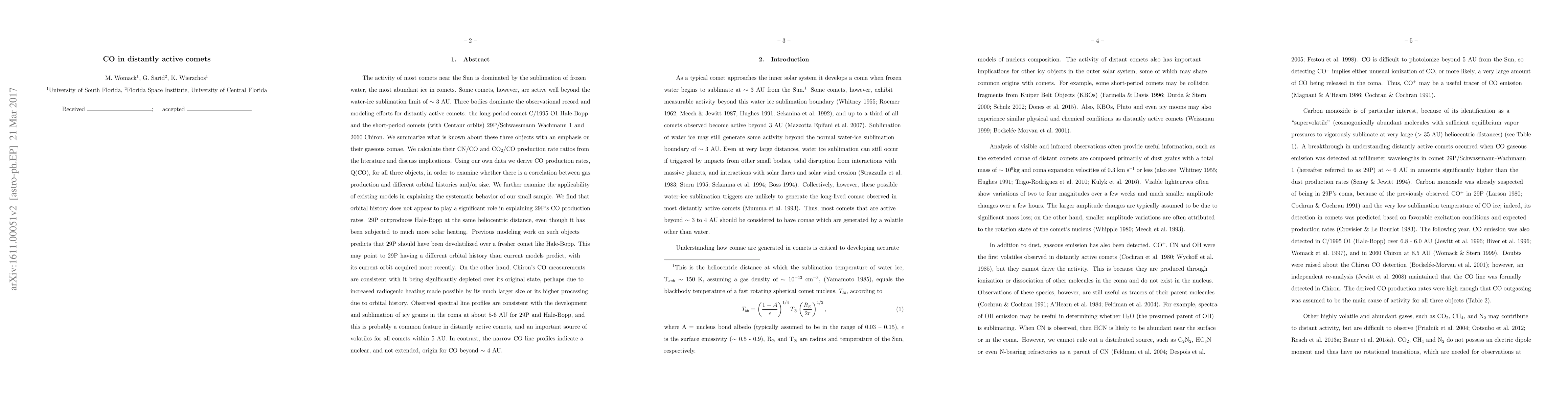The study presents a comprehensive analysis of CO production rates in distantly active comets, offering a comparative assessment of Hale-Bopp, 29P, and Chiron.