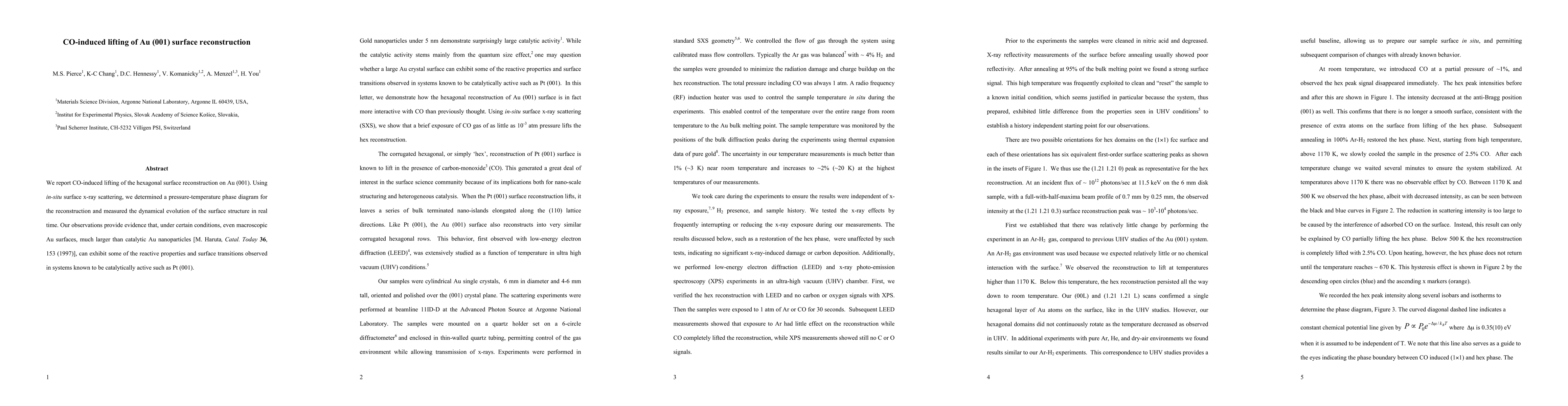 Research finds that exposing Au (001) surface to CO can induce a phase transition to a less reconstructed state, allowing the surface to exhibit catalytic properties under certain conditions.