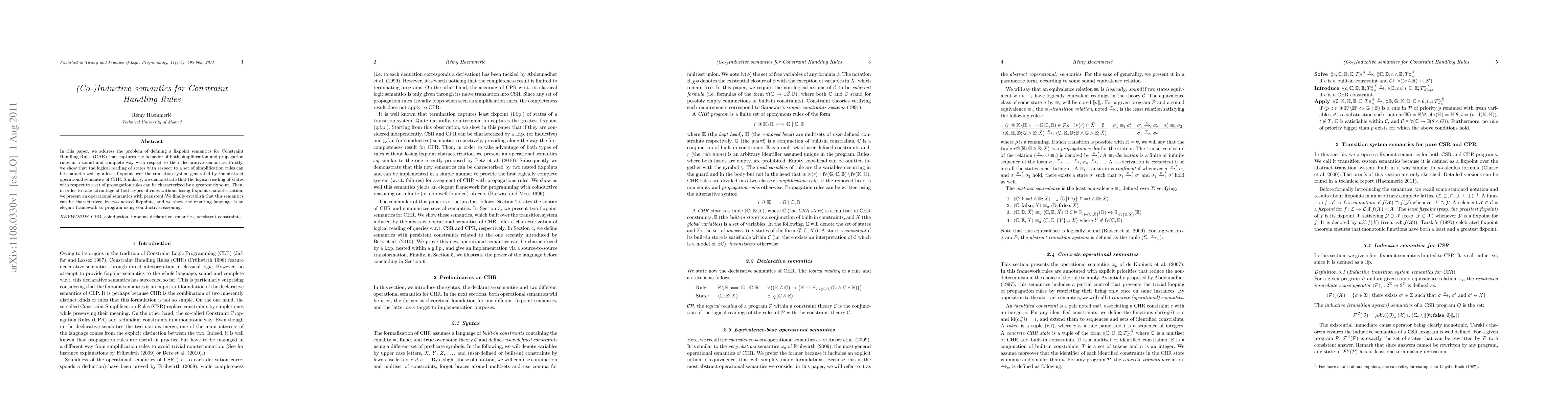 This paper defines a fixpoint semantics for Constraint Handling Rules (CHR) that captures the behavior of simplification and propagation rules. It presents a least fixpoint for simplification rules and a greatest fixpoint for propagation rules, and introduces an operational semantics with persistent to combine both, characterized by two nested fixpoints for an elegant framework using coinductive reasoning.