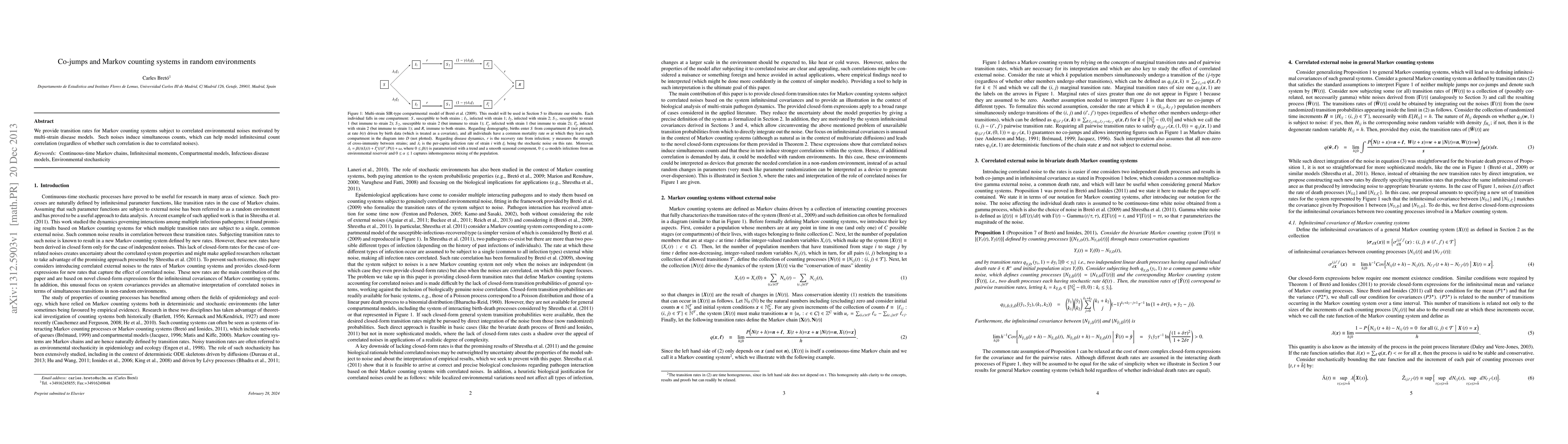 Summary: This paper presents transition rates for Markov counting systems affected by correlated environmental noise, useful for modeling infinitesimal count correlation in multi-strain disease models, through the concept of simultaneous counts.