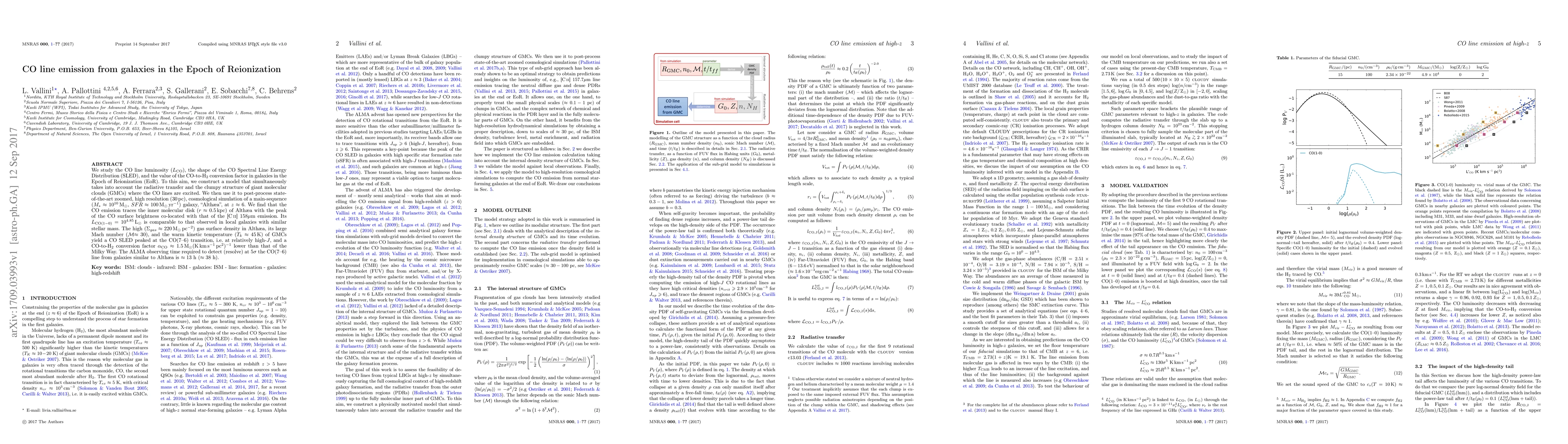 This study investigates CO line emission in galaxies during the Epoch of Reionization, finding that CO emission traces the inner molecular disk and peaks with [CII] emission. The CO-to-H₂ conversion factor is lower than in the Milky Way due to high gas density and warm kinetic temperatures in the galaxy "Althæa."