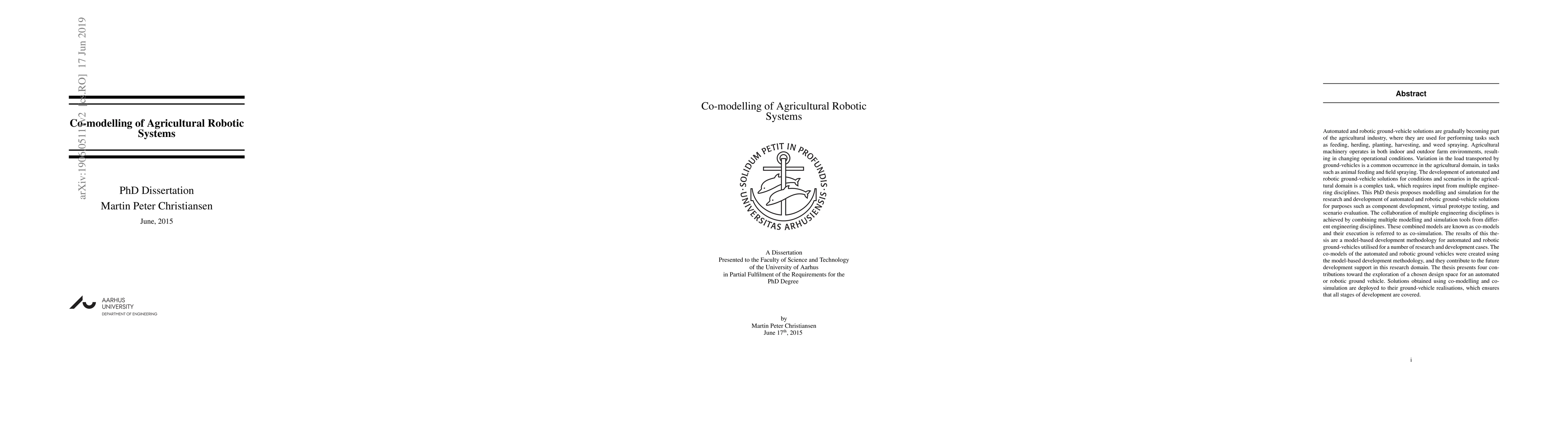 A PhD thesis proposes a model-based development methodology for automated and robotic ground-vehicle solutions using co-modeling and co-simulation to overcome complex design challenges in agriculture. The research presents four contributions toward exploring an optimal design space for these vehicles.
