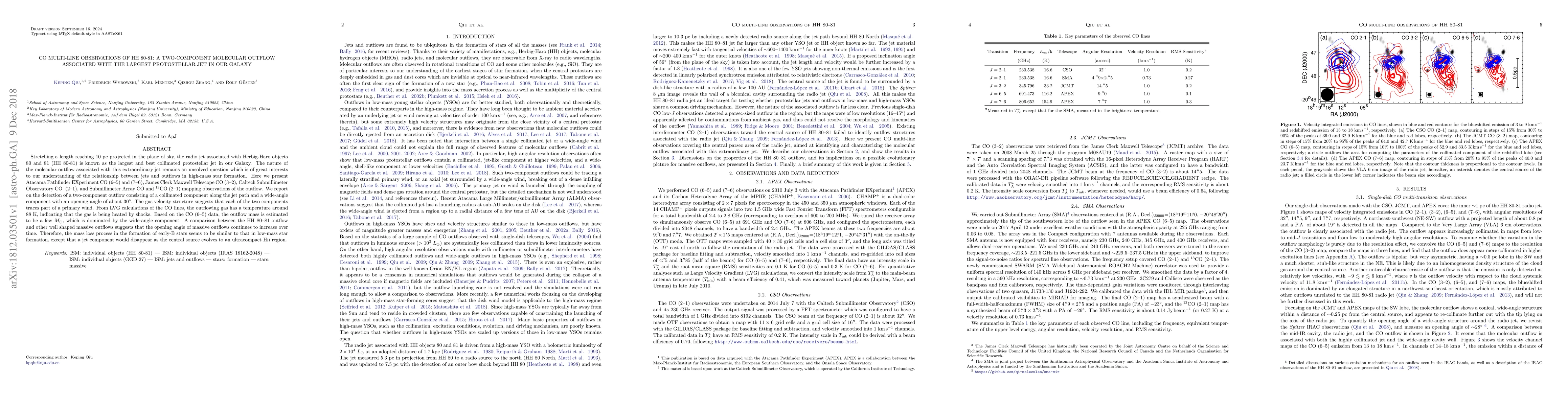 This paper reports CO multi-line observations revealing a two-component molecular outflow associated with the HH 80-81 protostellar jet, the largest in our Galaxy. The outflow includes a collimated jet component and a wide-angle component with an opening angle of about $30^{\circ}$, suggesting both trace parts of a primary wind.