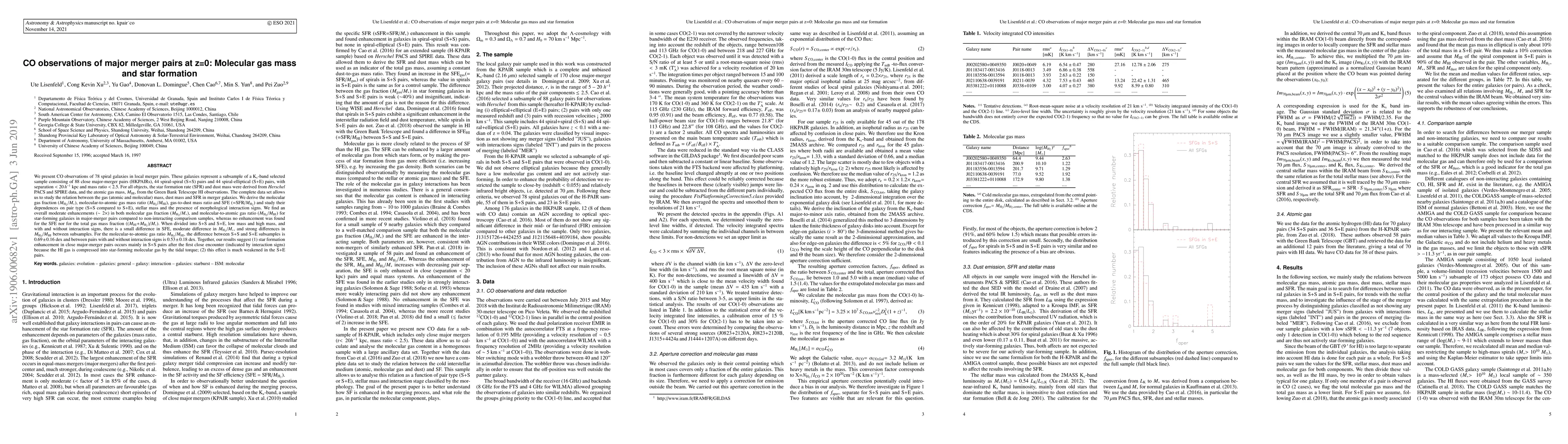 We present CO observations of 78 spiral galaxies in local merger pairs. These galaxies representa subsample of a Ks-band selected sample consisting of 88 close major-merger pairs (HKPAIRs), 44 spiral-spiral (S+S) pairs and 44 spiral-elliptical (S+E) pairs, with separation $<20 h^{-1}$ kpc and mass ratio <2.5. For all objects, the star formation rate (SFR) and dust mass were derived from HERSCHEL PACS and SPIRE data, and the atomic gas mass, MHI, from the Green Bank Telescope HI observations. The complete data set allows us to study the relation between the gas (atomic and molecular) mass, dust mass and SFR in merger galaxies. We derive the molecular gas fraction (MH2/M*), molecular-to-atomic gas mass ratio (MH2/MHI), gas-to-dust mass ratio and SFE (=SFR/MH2) and study their dependences on pair type (S+S compared to S+E), stellar mass and the presence of morphological interaction signs. We find an overall moderate enhancements (~2x) in both molecular gas fraction (MH2/M*), and molecular-to-atomic gas ratio (MH2/MHI) for star-forming galaxies in major-merger pairs compared to non-interacting comparison samples, whereas no enhancement was found for the SFE nor for the total gas mass fraction (MHI+MH2)/M*. When divided into S+S and S+E, low mass and high mass, and with and without interaction signs, there is a small difference in SFE, moderate difference in MH2/M*, and strong differences in MH2/MHI between subsamples. For MH2/MHI, the difference between S+S and S+E subsamples is 0.69+-0.16 dex and between pairs with and without interaction signs is 0.53+-0.18 dex. Together, our results suggest (1) star formation enhancement in close major-merger pairs occurs mainly in S+S pairs after the first close encounter (indicated by interaction signs) because the HI gas is compressed into star-forming molecular gas by the tidal torque; (2) this effect is much weakened in the S+E pairs.
