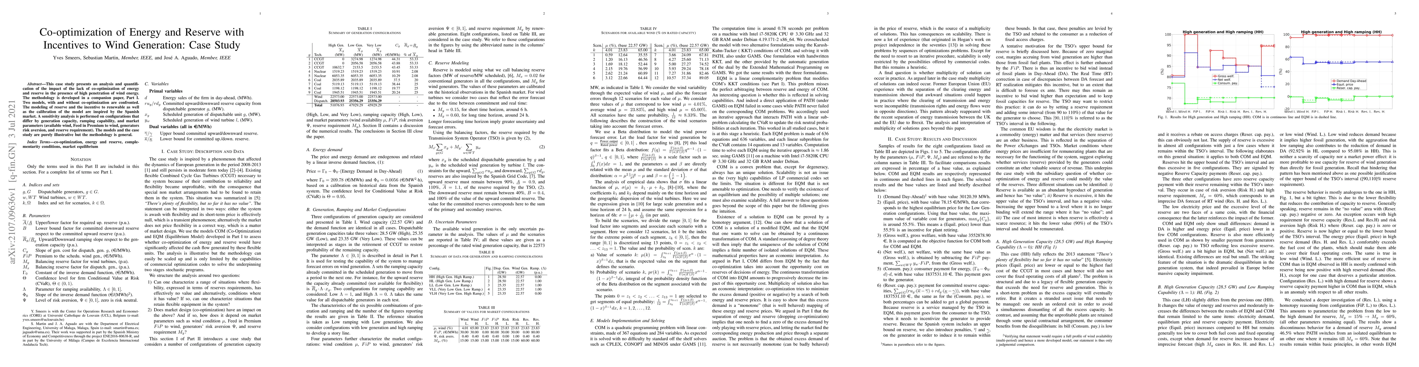 This case study presents an analysis and quantification of the impact of the lack of co-optimization of energy and reserve in the presence of high penetration of wind energy. The methodology is developed in a companion paper, Part I. Two models, with and without co-optimization are confronted. The modeling of reserve and the incentive to renewable as well as the calibration of the model are inspired by the Spanish market. A sensitivity analysis is performed on configurations that differ by generation capacity, ramping capability, and market parameters (available wind, Feed in Premium to wind, generators risk aversion, and reserve requirement). The models and the case study are purely illustrative but the methodology is general.