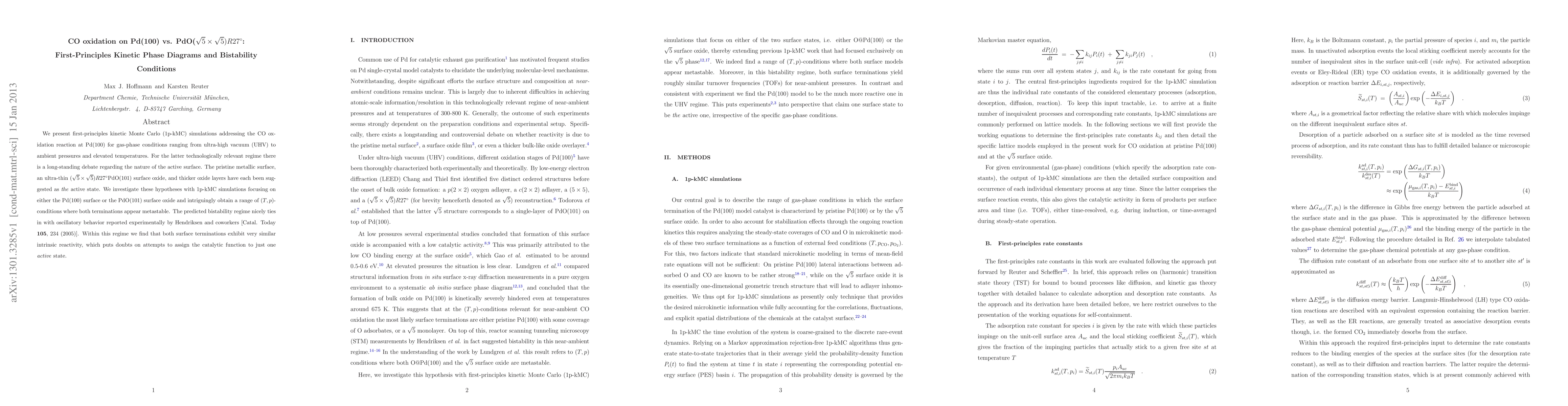 This study uses first-principles kinetic Monte Carlo simulations to explore CO oxidation on Pd(100) and PdO(sqrt5xsqrt5)R27^o surfaces under varying conditions. It reveals a bistability regime where both surface terminations exhibit similar reactivity, challenging the notion that only one surface state is catalytically active.