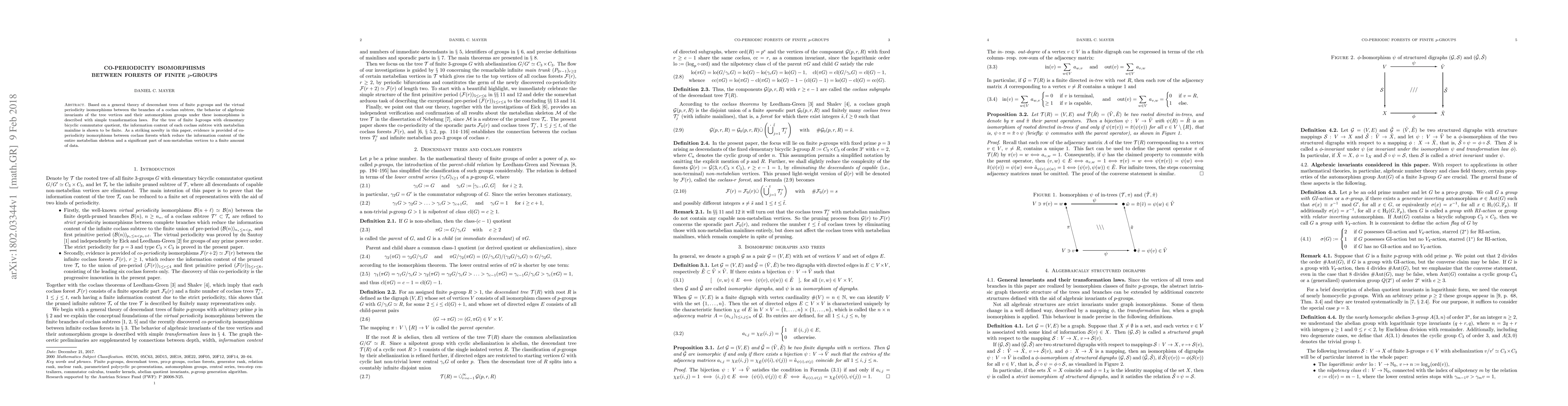 Based on a general theory of descendant trees of finite p-groups and the virtual periodicity isomorphisms between the branches of a coclass subtree, the behavior of algebraic invariants of the tree vertices and their automorphism groups under these isomorphisms is described with simple transformation laws. For the tree of finite 3-groups with elementary bicyclic commutator quotient, the information content of each coclass subtree with metabelian mainline is shown to be finite. As a striking novelty in this paper, evidence is provided of co-periodicity isomorphisms between coclass forests which reduce the information content of the entire metabelian skeleton and a significant part of non-metabelian vertices to a finite amount of data.