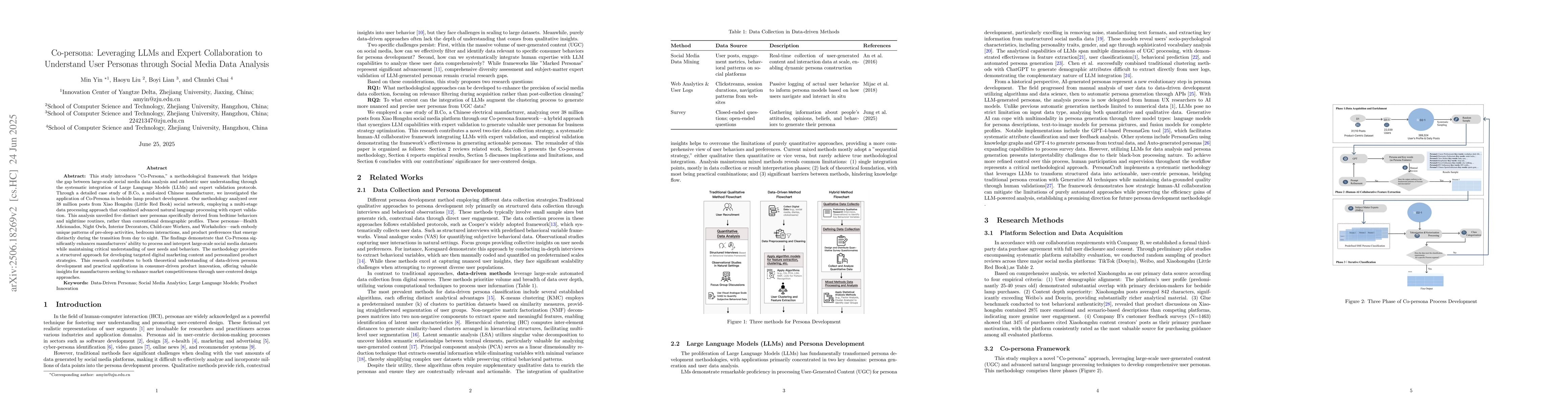 This study introduces Co-Persona, a methodological framework bridging large-scale social media analysis with authentic user understanding through systematic integration of Large Language Models and expert validation. Through a case study of B.Co, a Chinese manufacturer, we investigated Co-Persona application in bedside lamp development. Our methodology analyzed over 38 million posts from Xiao Hongshu, employing multi-stage data processing combining advanced NLP with expert validation. Analysis revealed five user personas derived from bedtime behaviors: Health Aficionados, Night Owls, Interior Decorators, Child-care Workers, and Workaholics-each showing unique pre-sleep activities and product preferences. Findings demonstrate Co-Persona enhances manufacturers' ability to process large datasets while maintaining user understanding. The methodology provides structured approaches for targeted marketing and product strategies. Research contributes to theoretical understanding of data-driven persona development and practical applications in consumer-driven innovation. Code and data available at https://github.com/INFPa/LLMwithPersona.