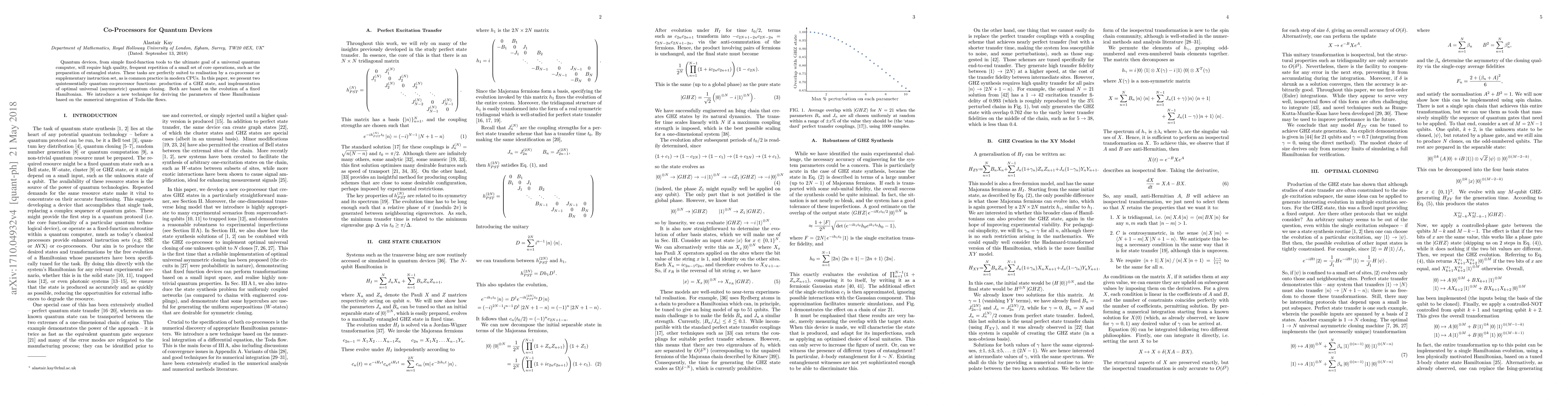 Quantum devices, from simple fixed-function tools to the ultimate goal of a universal quantum computer, will require high quality, frequent repetition of a small set of core operations, such as the preparation of entangled states. These tasks are perfectly suited to realisation by a co-processor or supplementary instruction set, as is common practice in modern CPUs. In this paper, we present two quintessentially quantum co-processor functions: production of a GHZ state, and implementation of optimal universal (asymmetric) quantum cloning. Both are based on the evolution of a fixed Hamiltonian. We introduce a new technique for deriving the parameters of these Hamiltonians based on the numerical integration of Toda-like flows.