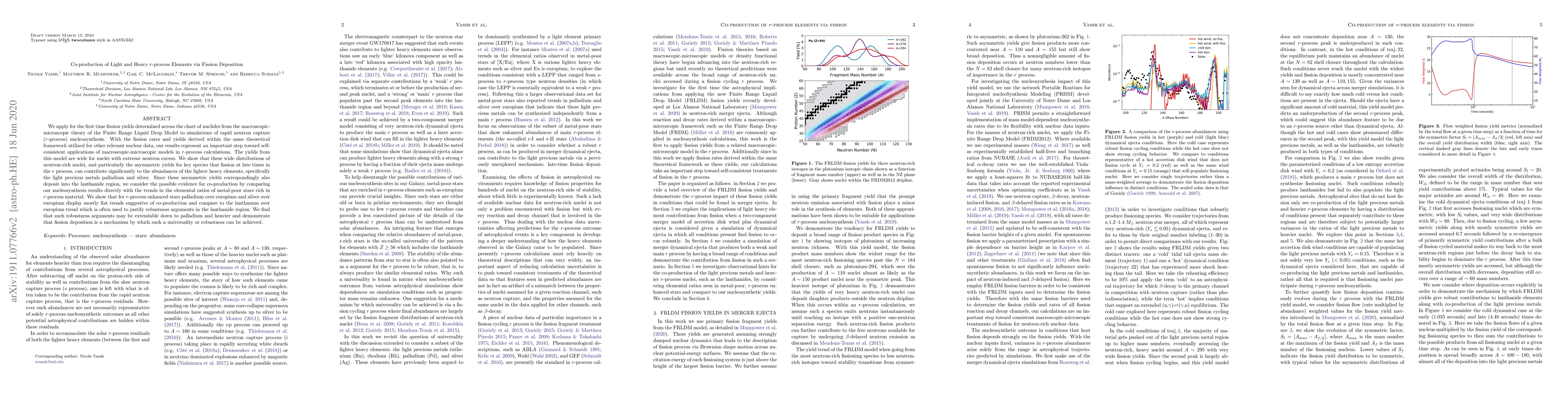 We apply for the first time fission yields determined across the chart of nuclides from the macroscopic-microscopic theory of the Finite Range Liquid Drop Model to simulations of rapid neutron capture ($r$-process) nucleosynthesis. With the fission rates and yields derived within the same theoretical framework utilized for other relevant nuclear data, our results represent an important step toward self-consistent applications of macroscopic-microscopic models in $r$-process calculations. The yields from this model are wide for nuclei with extreme neutron excess. We show that these wide distributions of neutron-rich nuclei, and particularly the asymmetric yields for key species that fission at late times in the $r$ process, can contribute significantly to the abundances of the lighter heavy elements, specifically the light precious metals palladium and silver. Since these asymmetric yields correspondingly also deposit into the lanthanide region, we consider the possible evidence for co-production by comparing our nucleosynthesis results directly with the trends in the elemental ratios of metal-poor stars rich in $r$-process material. We show that for $r$-process enhanced stars palladium over europium and silver over europium display mostly flat trends suggestive of co-production and compare to the lanthanum over europium trend which is often used to justify robustness arguments in the lanthanide region. We find that such robustness arguments may be extendable down to palladium and heavier and demonstrate that fission deposition is a mechanism by which such a universality or robustness can be achieved.