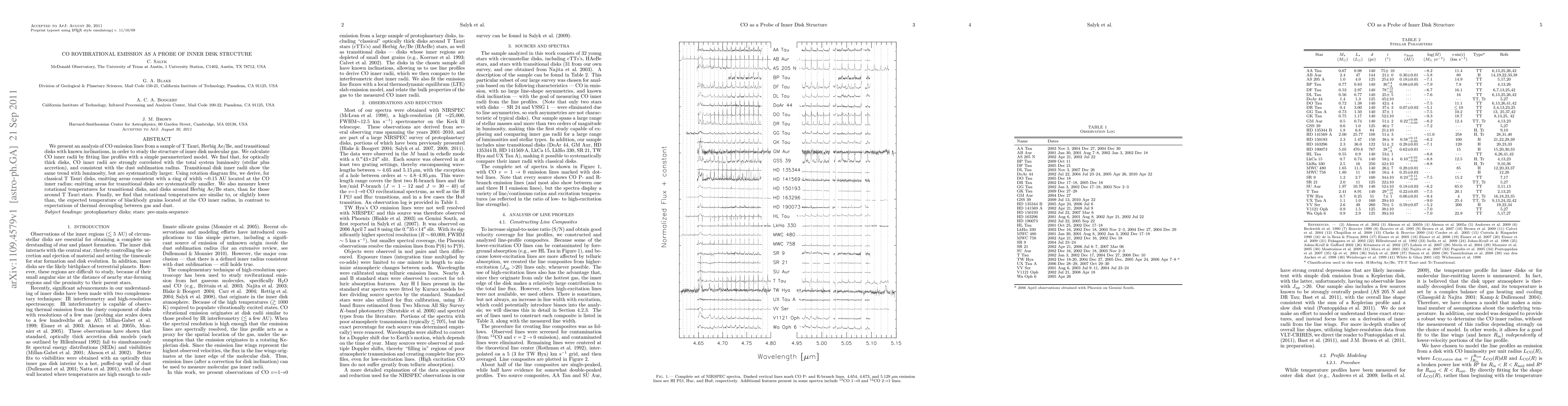 This study analyzes CO emission lines to probe the inner structure of molecular gas in various types of disks, finding that CO inner radii correlate with system luminosity and are consistent with dust sublimation radius. Transitional disks exhibit larger inner radii and lower rotational temperatures compared to classical T Tauri disks.