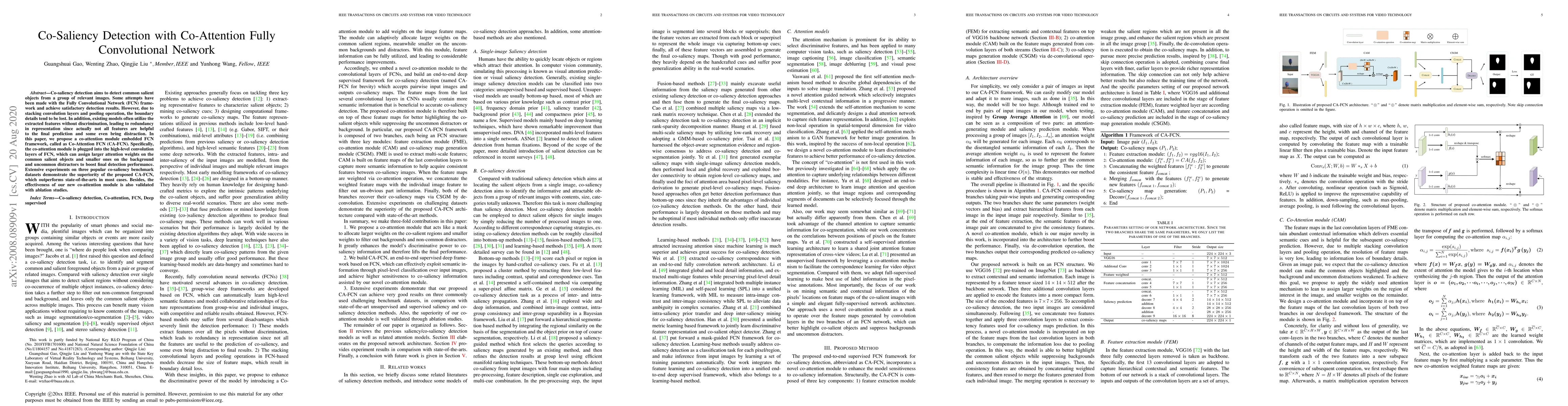 This paper proposes a Co-Attention Fully Convolutional Network (CA-FCN) to enhance co-saliency detection by embedding a co-attention module into the FCN framework to prioritize salient objects and suppress irrelevant details, leading to improved performance over existing methods. Experimental results show CA-FCN outperforms state-of-the-art models on benchmark datasets.