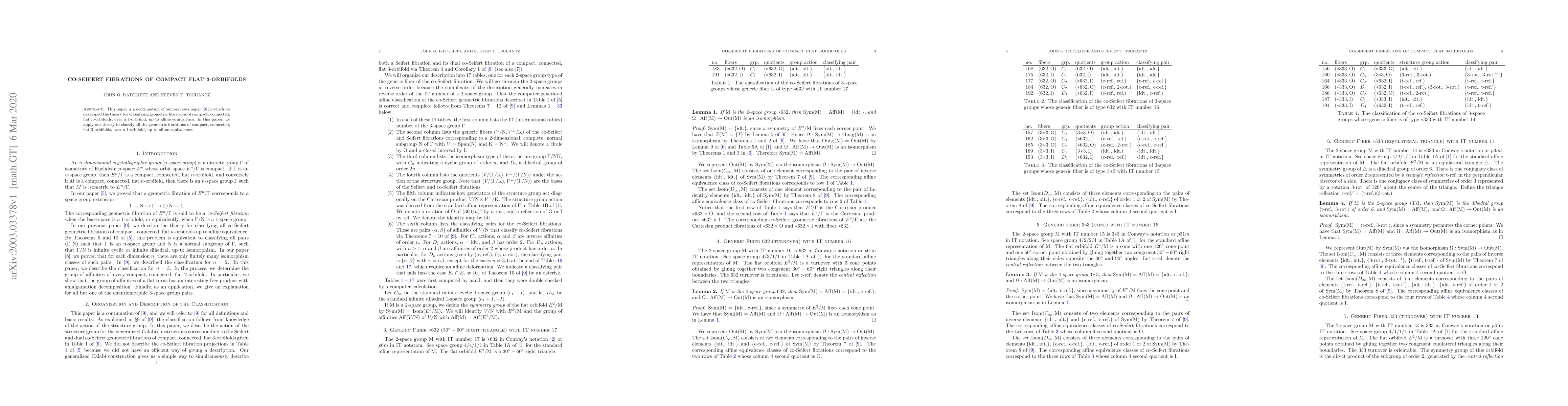 This paper is a continuation of our previous paper, Co-Seifert fibrations of compact flat orbifolds, in which we developed the theory for classifying geometric fibrations of compact, connected, flat $n$-orbifolds, over a 1-orbifold, up to affine equivalence. In this paper, we apply our theory to classify all the geometric fibrations of compact, connected, flat $3$-orbifolds, over a 1-orbifold, up to affine equivalence.