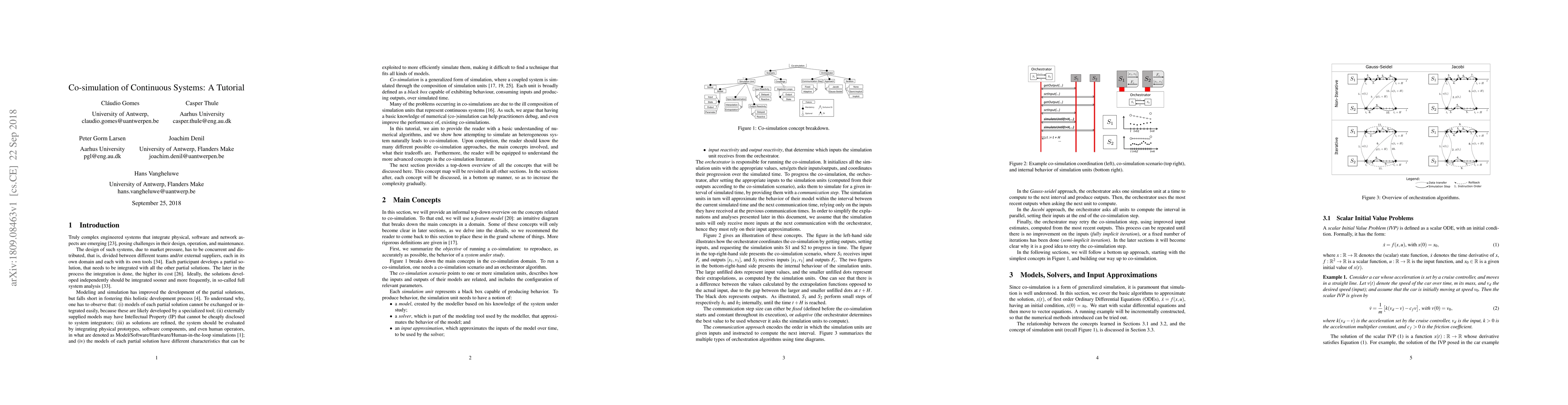 Co-simulation consists of the theory and techniques to enable global simulation of a coupled system via the composition of simulators. Despite the large number of applications and growing interest in the challenges, the field remains fragmented into multiple application domains, with limited sharing of knowledge. This tutorial aims at introducing co-simulation of continuous systems, targeted at researchers new to the field.