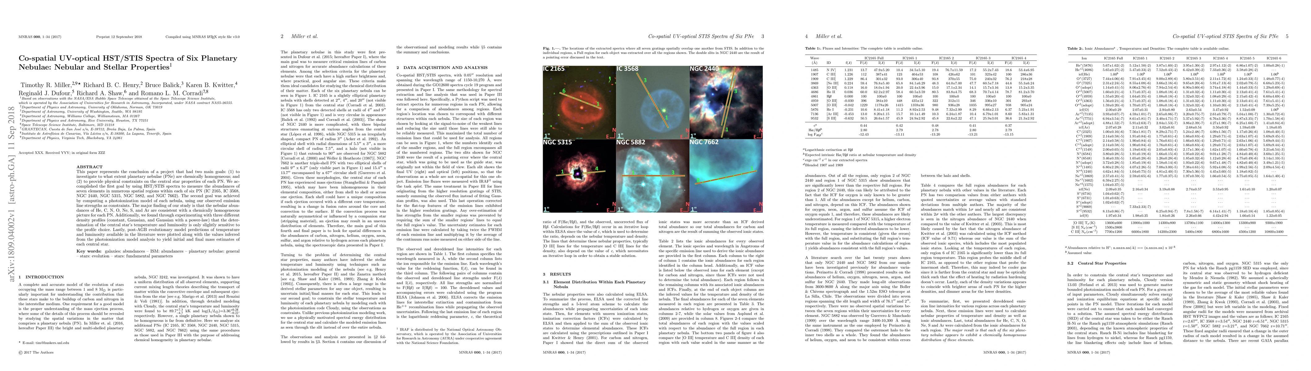 This paper represents the conclusion of a project that had two main goals: (1) to investigate to what extent planetary nebulae (PNe) are chemically homogeneous; and (2) to provide physical constraints on the central star properties of each PN. We accomplished the first goal by using HST/STIS spectra to measure the abundances of seven elements in numerous spatial regions within each of six PN (IC 2165, IC 3568, NGC 2440, NGC 5315, NGC 5882, and NGC 7662). The second goal was achieved by computing a photoionization model of each nebula, using our observed emission line strengths as constraints. The major finding of our study is that the nebular abundances of He, C, N, O, Ne, S, and Ar are consistent with a chemically homogeneous picture for each PN. Additionally, we found through experimenting with three different density profiles (constant, Gaussian, and Gaussian with a power-law) that the determination of the central star's temperature and luminosity is only slightly sensitive to the profile choice. Lastly, post-AGB evolutionary model predictions of temperature and luminosity available in the literature were plotted along with the values inferred from the photoionization model analysis to yield initial and final mass estimates of each central star.