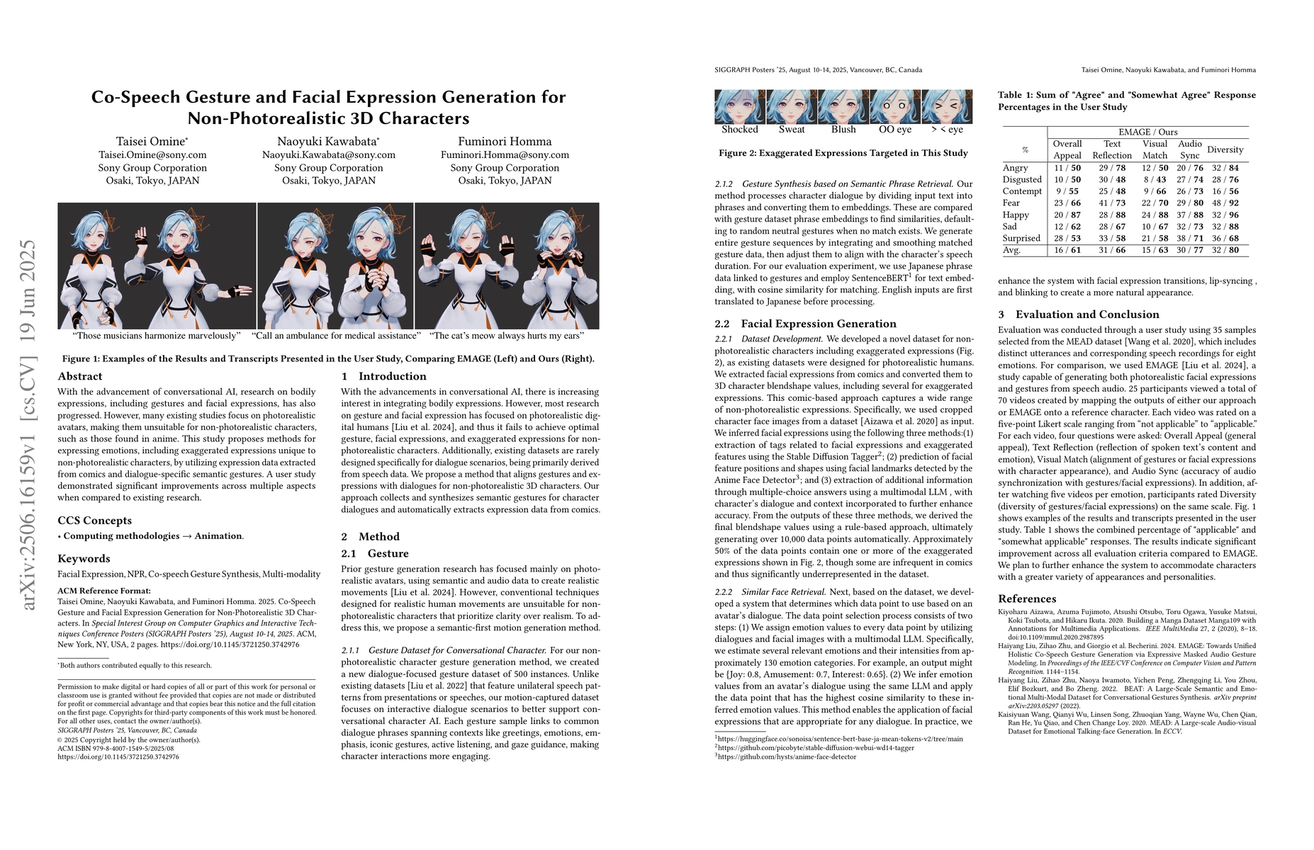 With the advancement of conversational AI, research on bodily expressions, including gestures and facial expressions, has also progressed. However, many existing studies focus on photorealistic avatars, making them unsuitable for non-photorealistic characters, such as those found in anime. This study proposes methods for expressing emotions, including exaggerated expressions unique to non-photorealistic characters, by utilizing expression data extracted from comics and dialogue-specific semantic gestures. A user study demonstrated significant improvements across multiple aspects when compared to existing research.