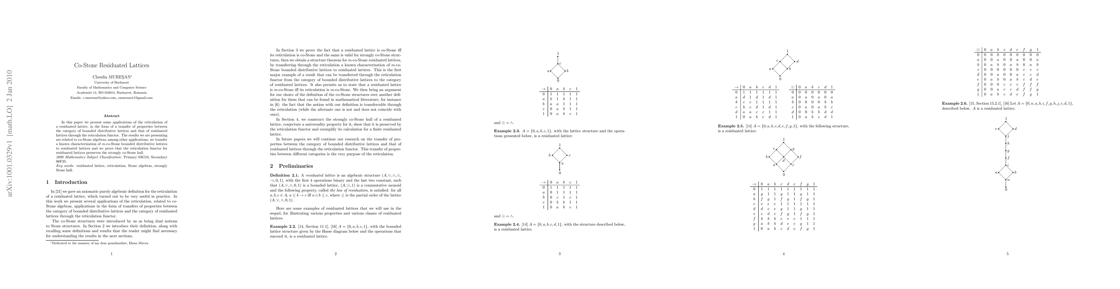 In this paper we present some applications of the reticulation of a residuated lattice, in the form of a transfer of properties between the category of bounded distributive lattices and that of residuated lattices through the reticulation functor. The results we are presenting are related to co-Stone algebras; among other applications, we transfer a known characterization of m-co-Stone bounded distributive lattices to residuated lattices and we prove that the reticulation functor for residuated lattices preserves the strongly co-Stone hull.
