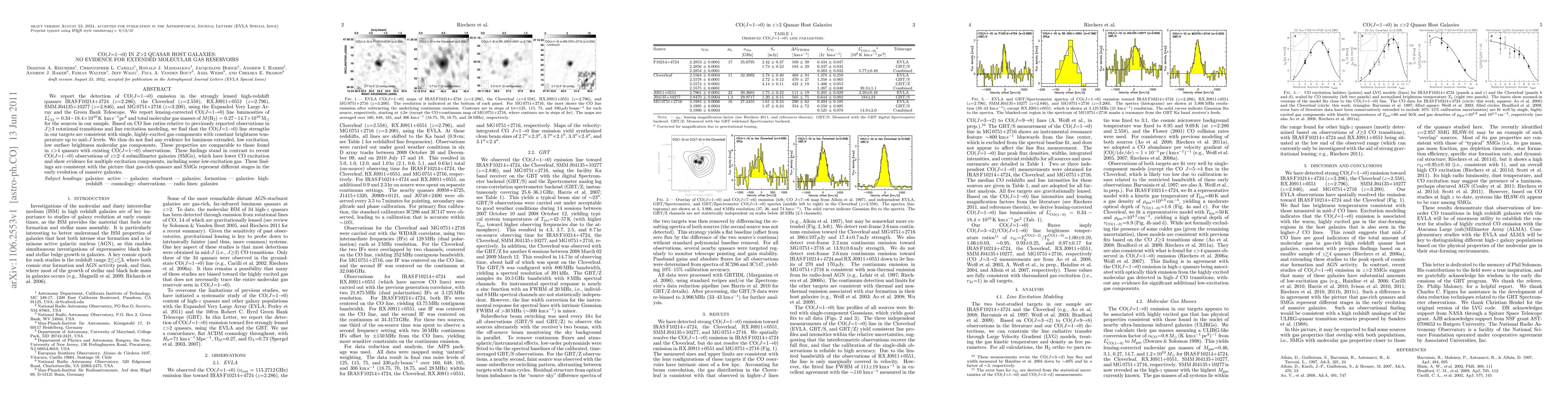 This study detected CO(1-0) emission in high-redshift quasar host galaxies, finding no evidence for extended, low-excitation molecular gas reservoirs. The observed CO line strengths suggest a single, highly-excited gas component, contrasting with lower-excitation gas seen in submillimeter galaxies.