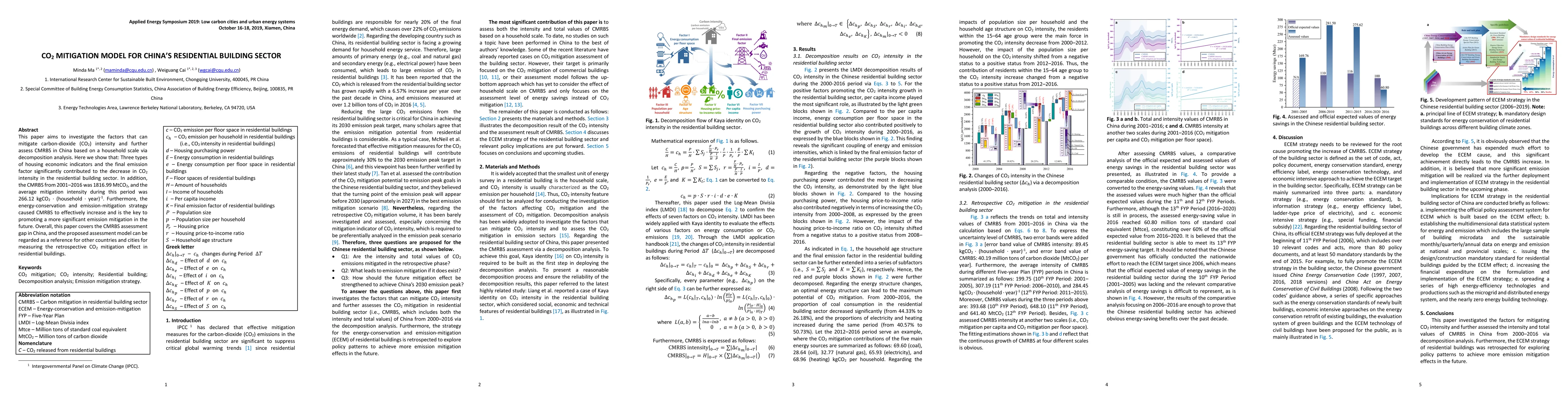 This paper aims to investigate the factors that can mitigate carbon-dioxide (CO2) intensity and further assess CMRBS in China based on a household scale via decomposition analysis. Here we show that: Three types of housing economic indicators and the final emission factor significantly contributed to the decrease in CO2 intensity in the residential building sector. In addition, the CMRBS from 2001-2016 was 1816.99 MtCO2, and the average mitigation intensity during this period was 266.12 kgCO2/household/year. Furthermore, the energy-conservation and emission-mitigation strategy caused CMRBS to effectively increase and is the key to promoting a more significant emission mitigation in the future. Overall, this paper covers the CMRBS assessment gap in China, and the proposed assessment model can be regarded as a reference for other countries and cities for measuring the retrospective CO2 mitigation effect in residential buildings.