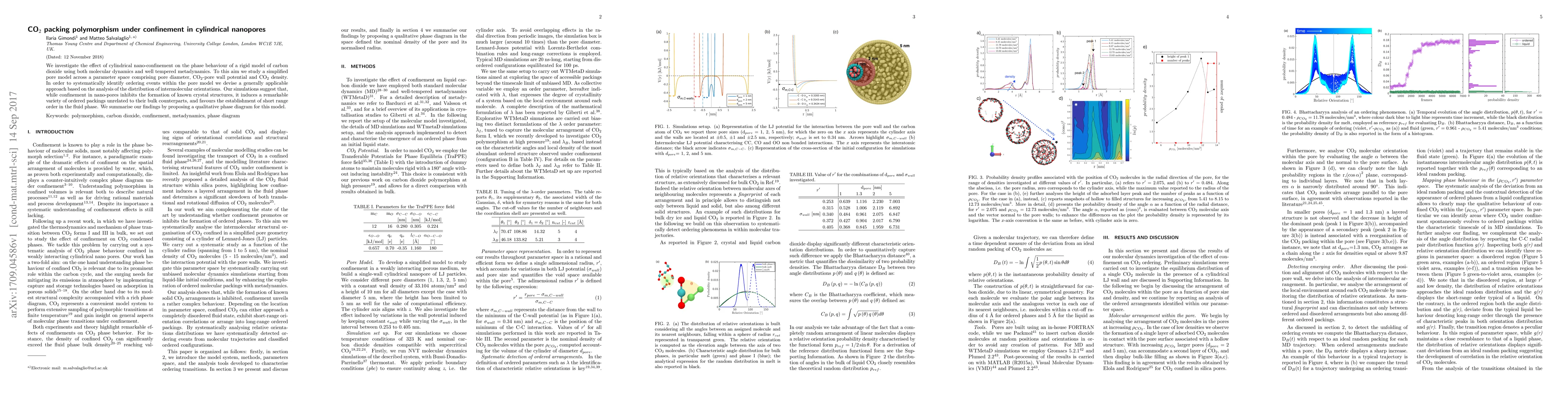 This study uses molecular dynamics and metadynamics simulations to explore how cylindrical nano-confinement affects the phase behavior of carbon dioxide, revealing a variety of novel ordered packings not seen in bulk phases and highlighting the emergence of short-range order in fluid phases. The research proposes a qualitative phase diagram for the investigated model.