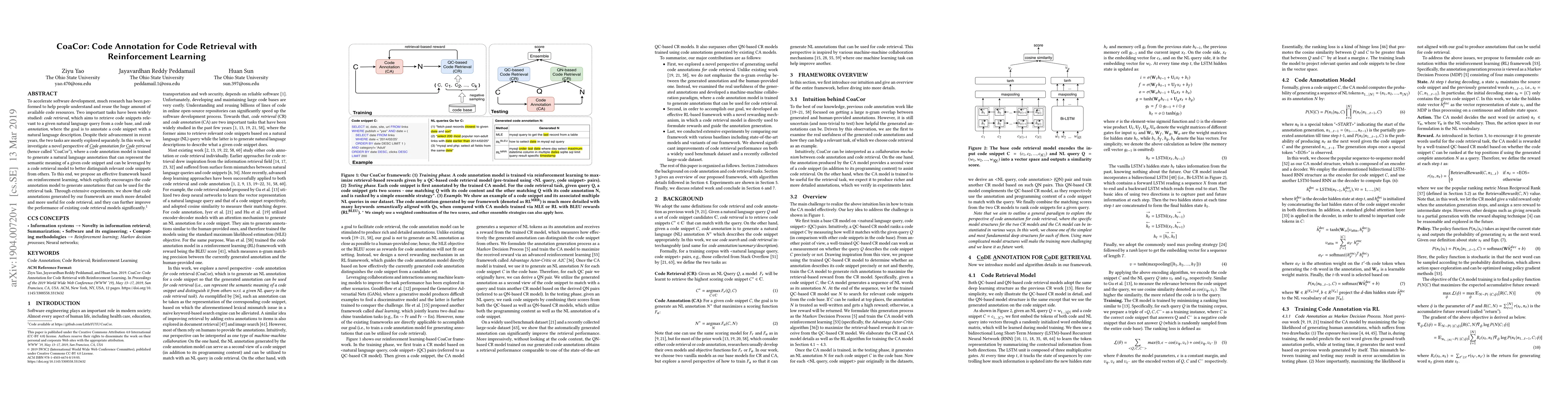 This paper introduces CoaCor, a framework using reinforcement learning to enhance code annotation for improved code retrieval. The proposed method trains annotation models to generate detailed natural language descriptions that aid in distinguishing relevant code snippets, significantly boosting existing code retrieval performance.