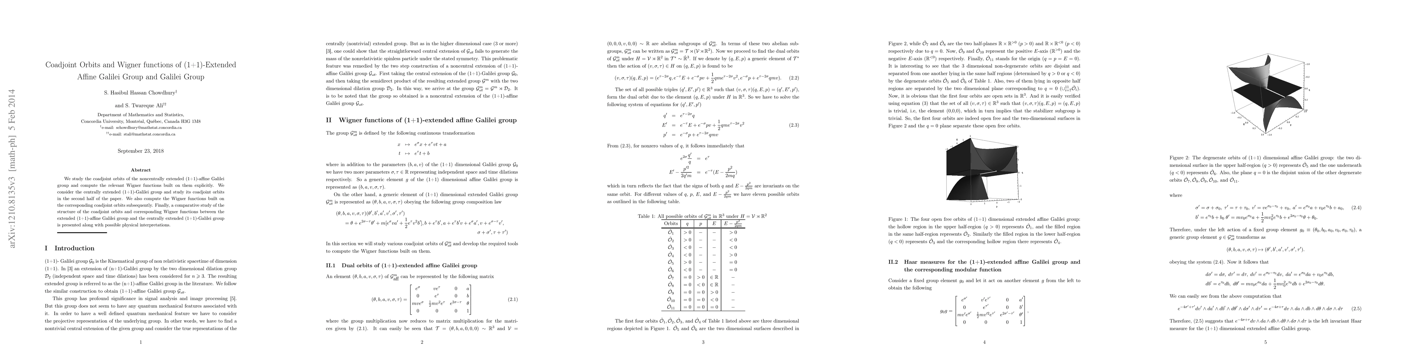 This paper investigates the coadjoint orbits of both the (1+1)-extended affine Galilei group and the centrally extended Galilei group, and computes their respective Wigner functions. It concludes with a comparative analysis of the coadjoint orbits and Wigner functions, providing insights into their physical implications.