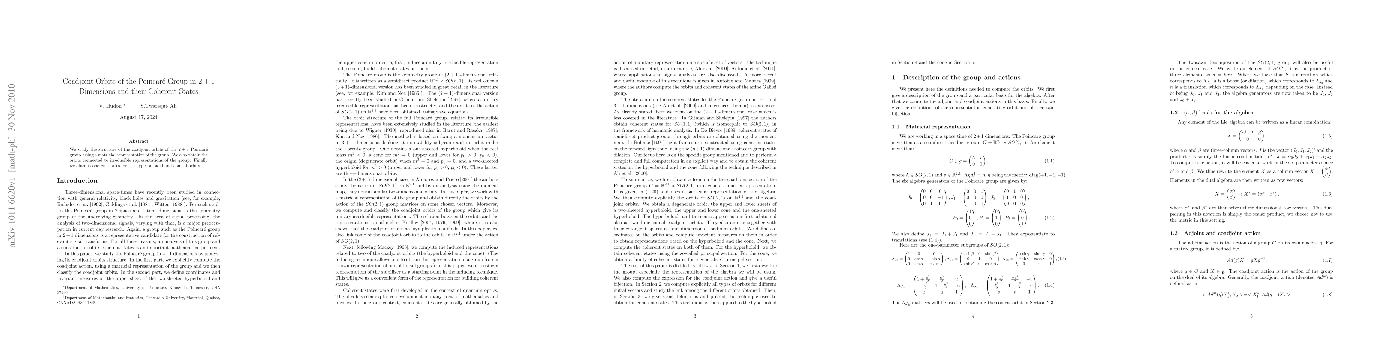 This paper investigates the coadjoint orbits of the 2+1 Poincaré group through a matricial representation, explores their connection to irreducible representations, and derives coherent states for specific orbits, including hyperboloidal and conical ones.