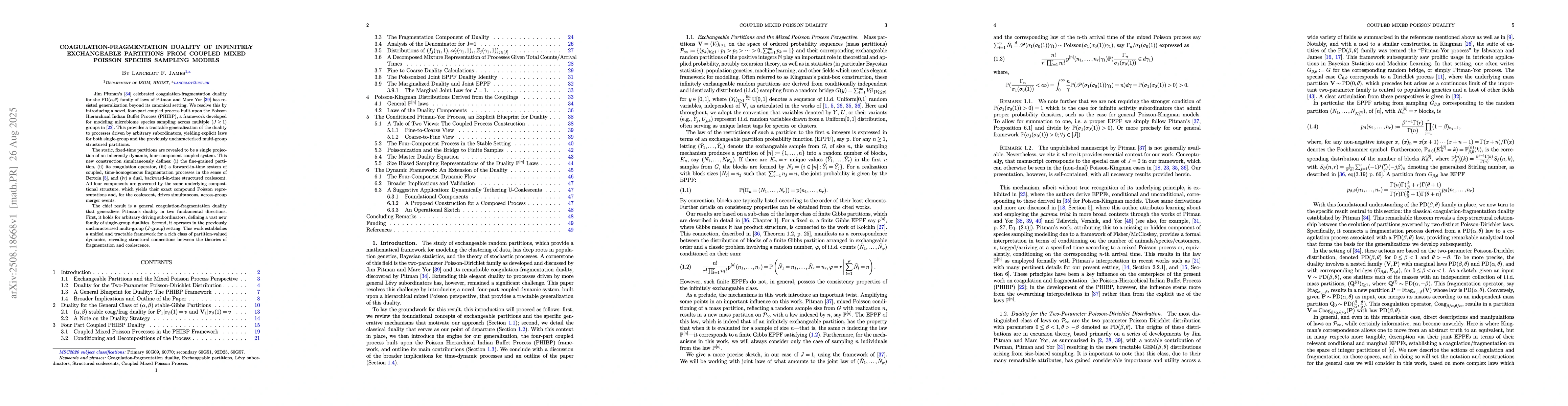 Jim Pitman's (1999) celebrated coagulation-fragmentation duality for the PD($\alpha$,$\theta$) family of laws of Pitman and Marc Yor (1997) has resisted generalization beyond its canonical setting. We resolve this by introducing a novel, four-part coupled process built upon the Poisson Hierarchical Indian Buffet Process (PHIBP), a framework we recently developed for modeling microbiome species sampling across multiple ($J \ge 1$) groups. This provides a tractable generalization of the duality to processes driven by arbitrary subordinators, yielding explicit laws for both single-group and the previously uncharacterised multi-group structured partitions. The static, fixed-time partitions are revealed to be a single projection of an inherently dynamic, four-component coupled system. This new construction simultaneously defines: (i) the fine-grained partition, (ii) its coagulation operator, (iii) a forward-in-time system of coupled, time-homogeneous fragmentation processes in the sense of Jean Bertoin (2006), and (iv) a dual, backward-in-time structured coalescent. All four components are governed by the same underlying compositional structure, which yields their exact compound Poisson representations and, for the coalescent, drives simultaneous, across-group merger events. The chief result is a general coagulation-fragmentation duality that generalizes Pitman's duality in two fundamental directions. First, it holds for arbitrary driving subordinators, defining a vast new family of single-group dualities. Second, it operates in the previously uncharacterised multi-group ($J$-group) setting. This work establishes a unified and tractable framework for a rich class of partition-valued dynamics, revealing structural connections between the theories of fragmentation and coalescence.