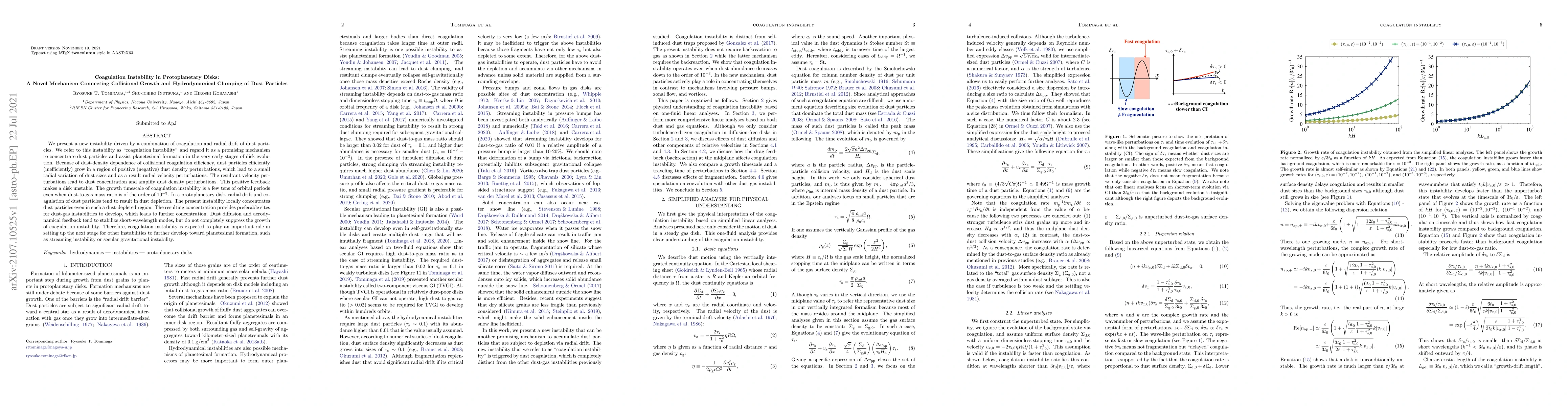 This paper introduces a novel "coagulation instability" in protoplanetary disks, driven by coagulation and radial drift of dust particles, which concentrates dust and aids planetesimal formation. The instability amplifies dust density perturbations through positive feedback, despite low dust-to-gas ratios, and sets the stage for subsequent dust-gas instabilities.