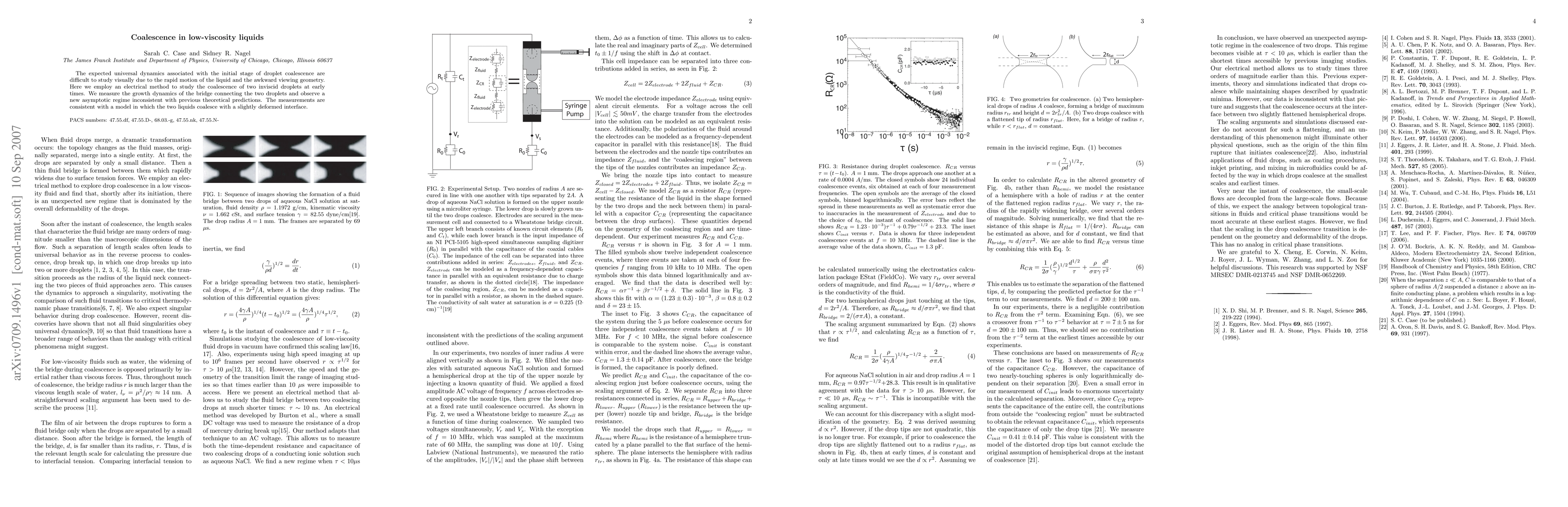The expected universal dynamics associated with the initial stage of droplet coalescence are difficult to study visually due to the rapid motion of the liquid and the awkward viewing geometry. Here we employ an electrical method to study the coalescence of two inviscid droplets at early times. We measure the growth dynamics of the bridge connecting the two droplets and observe a new asymptotic regime inconsistent with previous theoretical predictions. The measurements are consistent with a model in which the two liquids coalesce with a slightly deformed interface.