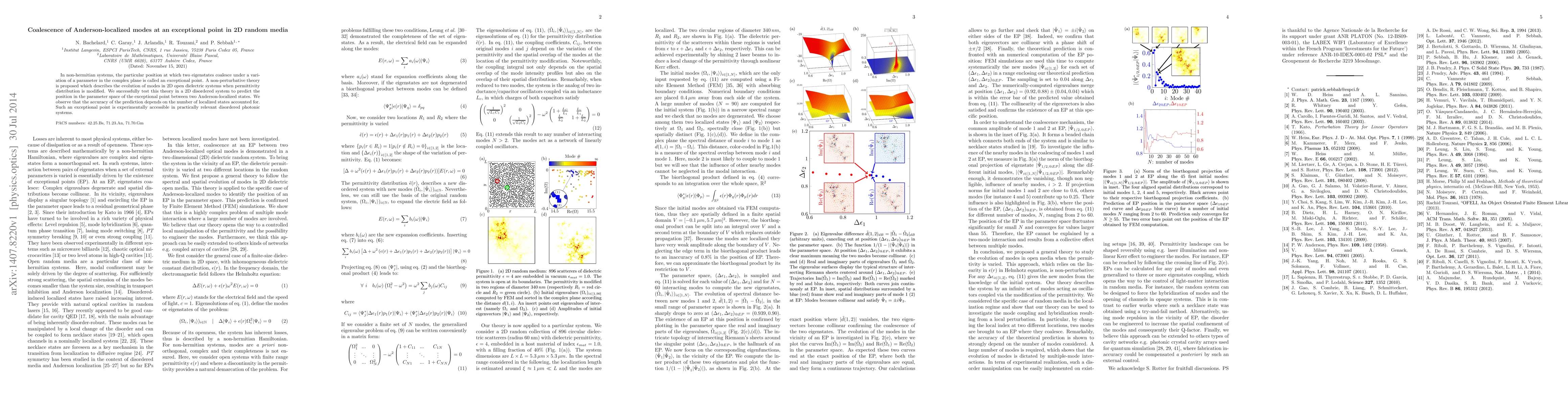 In non-hermitian systems, the particular position at which two eigenstates coalesce under a variation of a parameter in the complex plane is called an exceptional point. A non-perturbative theory is proposed which describes the evolution of modes in 2D open dielectric systems when permittivity distribution is modified. We successfully test this theory in a 2D disordered system to predict the position in the parameter space of the exceptional point between two Anderson-localized states. We observe that the accuracy of the prediction depends on the number of localized states accounted for. Such an exceptional point is experimentally accessible in practically relevant disordered photonic systems