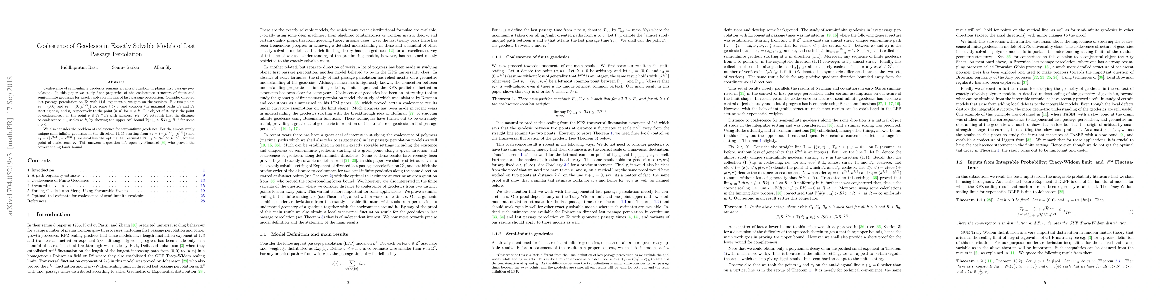 This paper investigates the coalescence properties of geodesics in exactly solvable models of last passage percolation, establishing scaling laws for the distance to coalescence in both finite and semi-infinite cases, and providing optimal tail estimates for the latter.