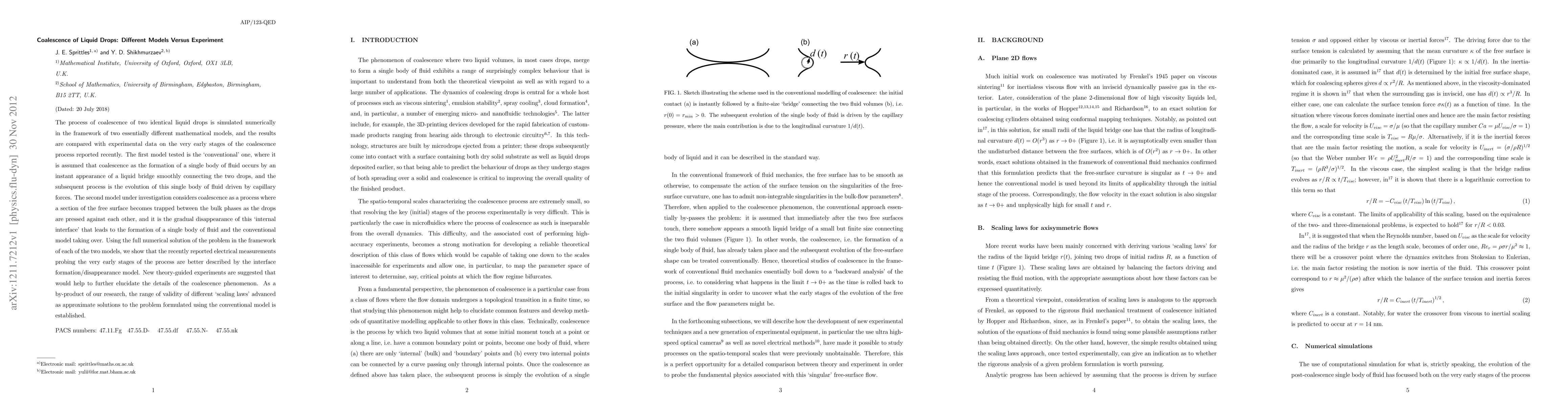 This paper compares numerical simulations of liquid drop coalescence using two distinct mathematical models against recent experimental data. The interface formation/disappearance model better explains the early stages of coalescence than the conventional model, suggesting a need for new theory-guided experiments to further clarify the phenomenon.