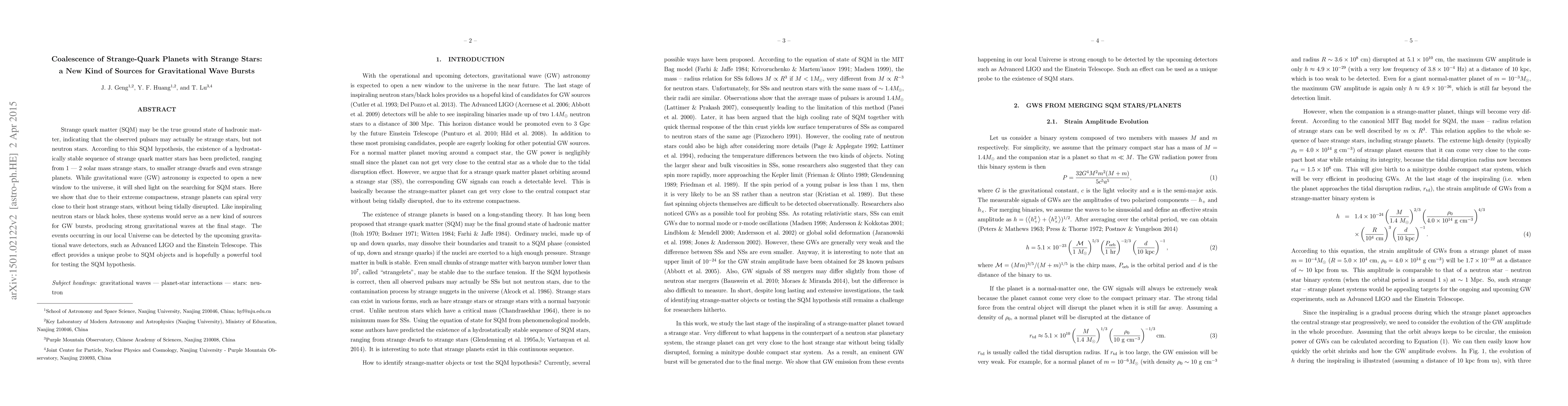 This paper explores the coalescence of strange-quark planets with strange stars, proposing them as a new source for gravitational wave bursts. It suggests that these compact objects, if they exist, could produce strong gravitational waves detectable by future observatories like Advanced LIGO and the Einstein Telescope, offering a unique test for the strange quark matter hypothesis.