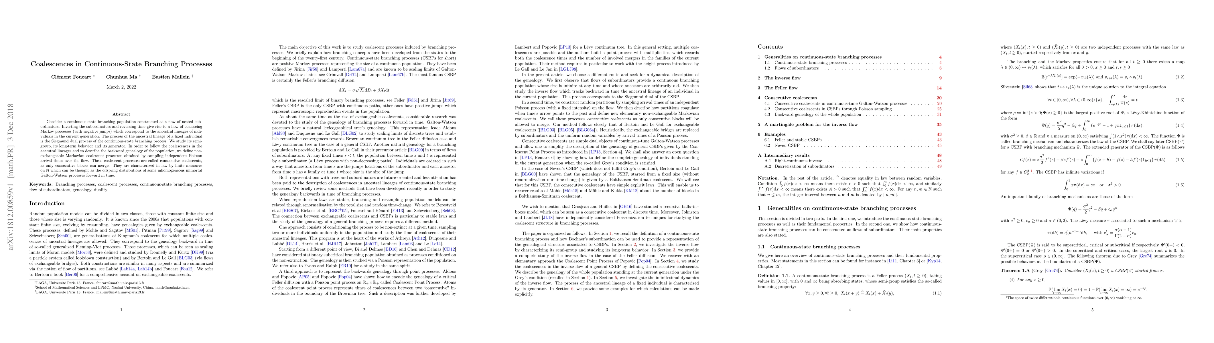 This paper investigates continuous-state branching processes through nested subordinators, analyzing the coalescence of ancestral lineages as Markov processes. It introduces consecutive coalescents to describe the backward genealogy, characterized by finite measures on $\mathbb{N}$ resembling offspring distributions in inhomogeneous Galton-Watson processes.