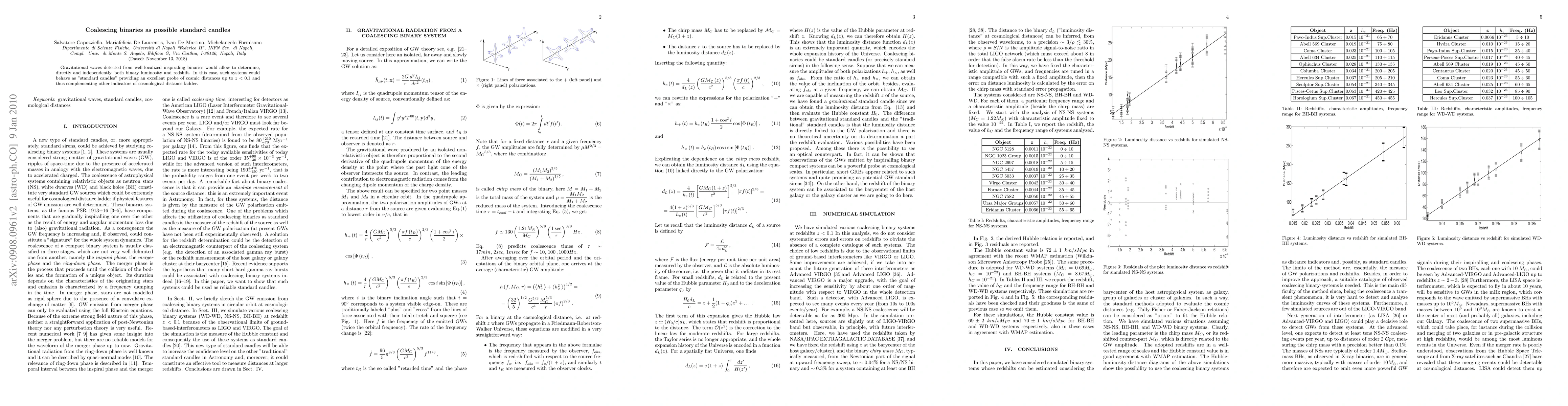 This paper explores the potential of coalescing binary systems as standard candles, suggesting that gravitational waves from these systems could independently determine luminosity and redshift, thereby offering a new method to measure cosmic distances up to $z < 0.1$ and enhancing the cosmological distance ladder.